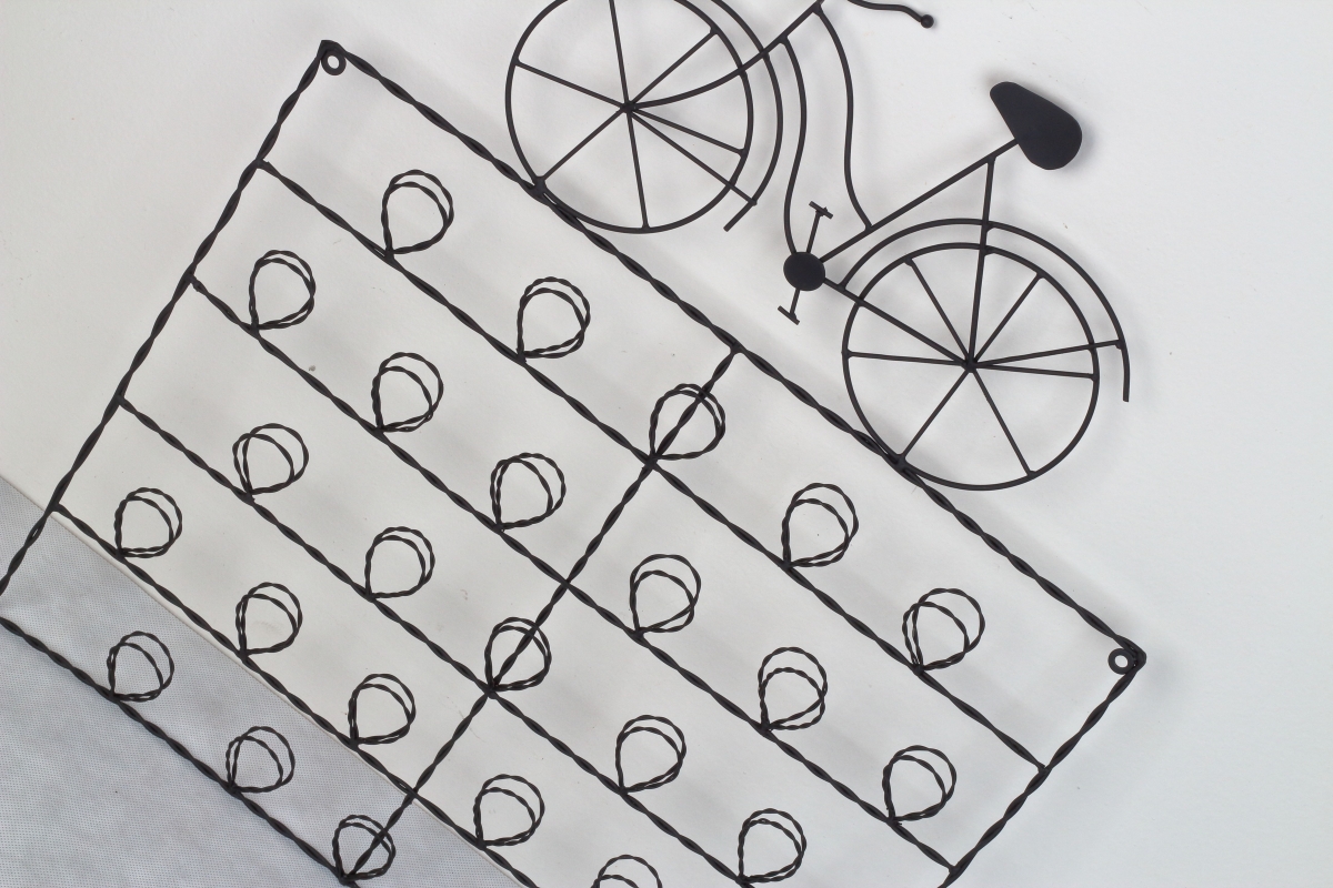 Nástenka na fotografie / odkazy koleso 59x49cm má veľa kovových očiek, do ktorých ľahko vsuniete pohľadnice, fotografie alebo odkazy.