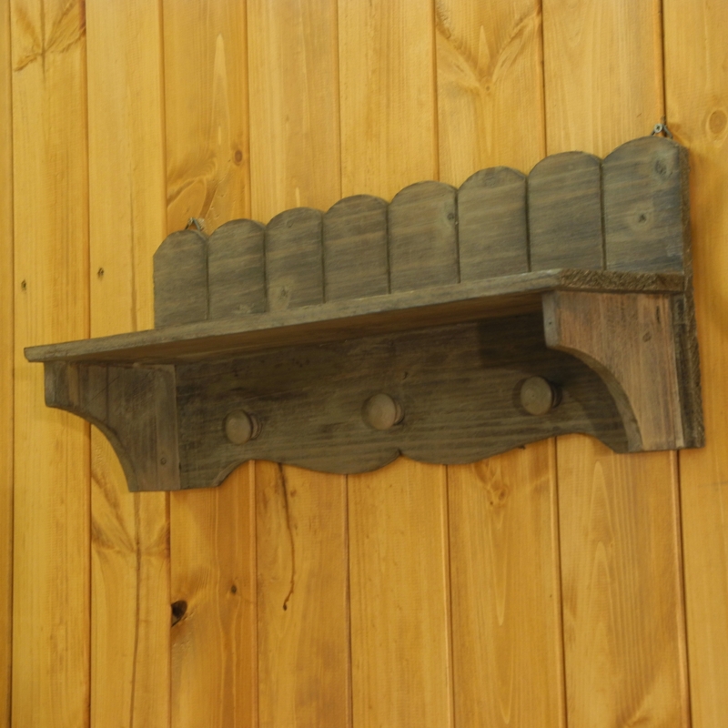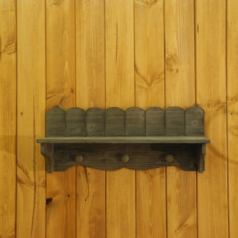 Polička bude slúžiť na vystavenie vašich obľúbených predmetov, ktoré môžete prípadne zavesiť na jeden z troch okrúhlych vešiačikov.