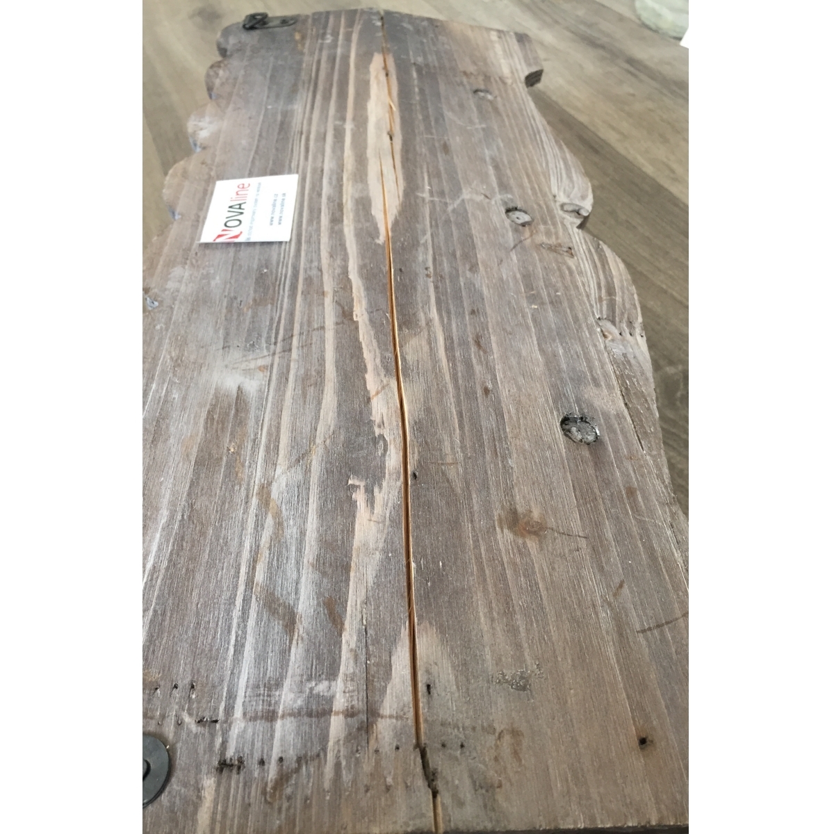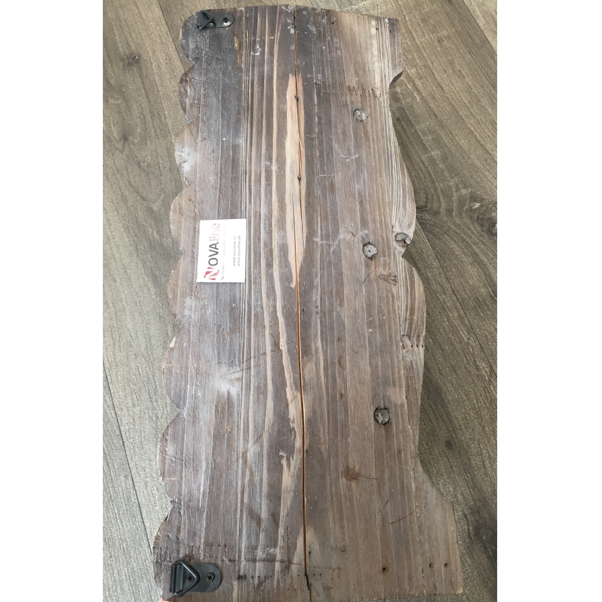 Nástenná drevená polička s háčikmi je vyradená z dôvodu praskliny viď foto č. 3 a 4.