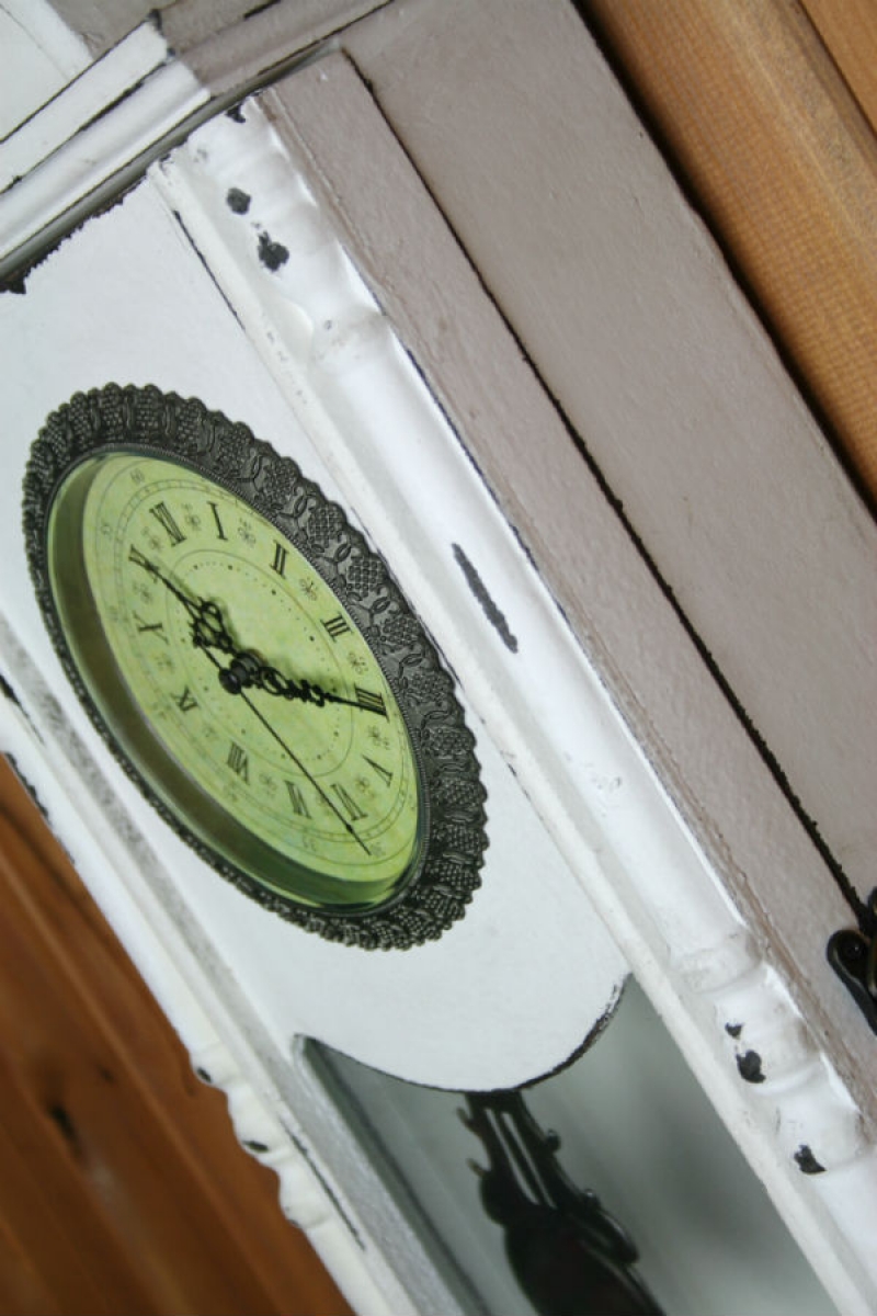 Hodiny majú otváracie predné dvierka, vo vnútri majú kyvadlo. Iste si pamätáte staré známe pendlovky. Tieto hodiny sú presne to pravé do interiéru zariadeného vo vidieckom štýle. Chod kyvadla je tedy pouze estetický doplněk, bez odbíjení.