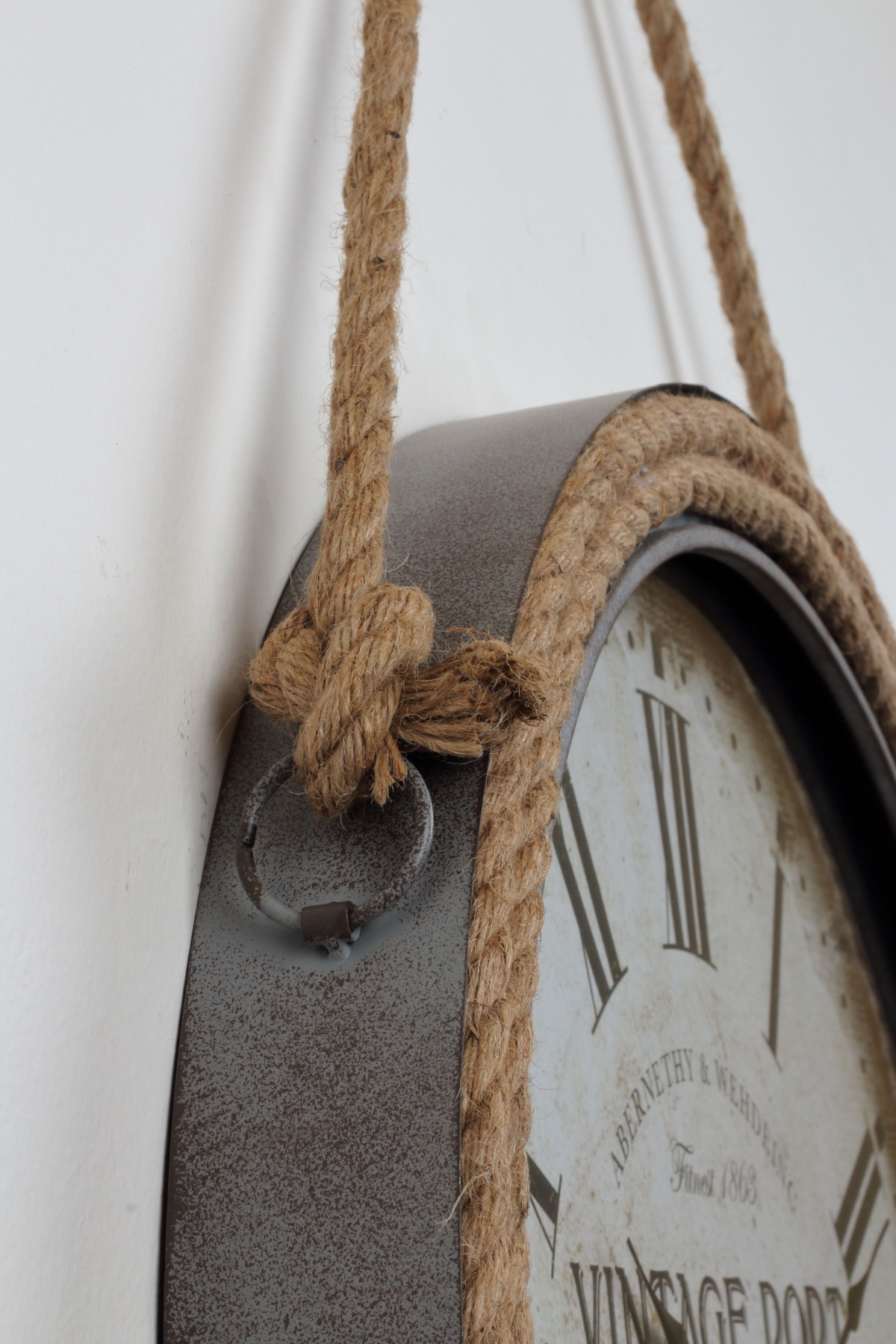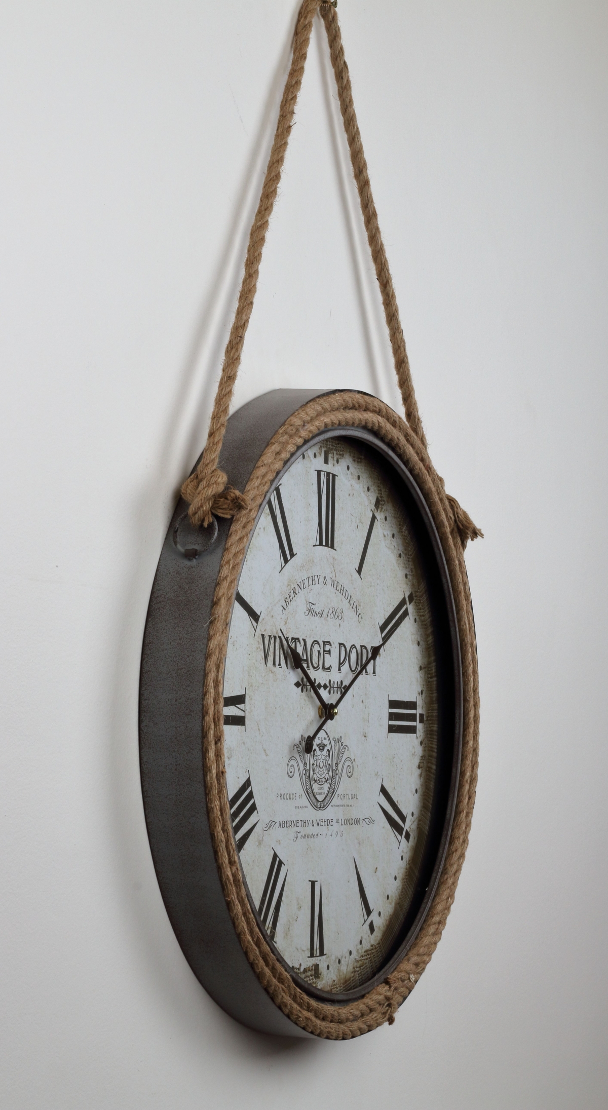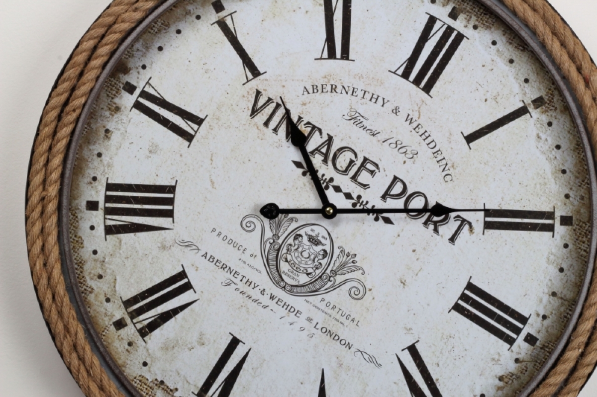 Hodiny s rámom lemovaným povrazom na ktorom sú tiež zavesené, dopĺňajú veľké rímske číslice, ktoré len tak neprehliadnete. Stred ciferníku je doplnený o drobné i väčšie nápisy.
