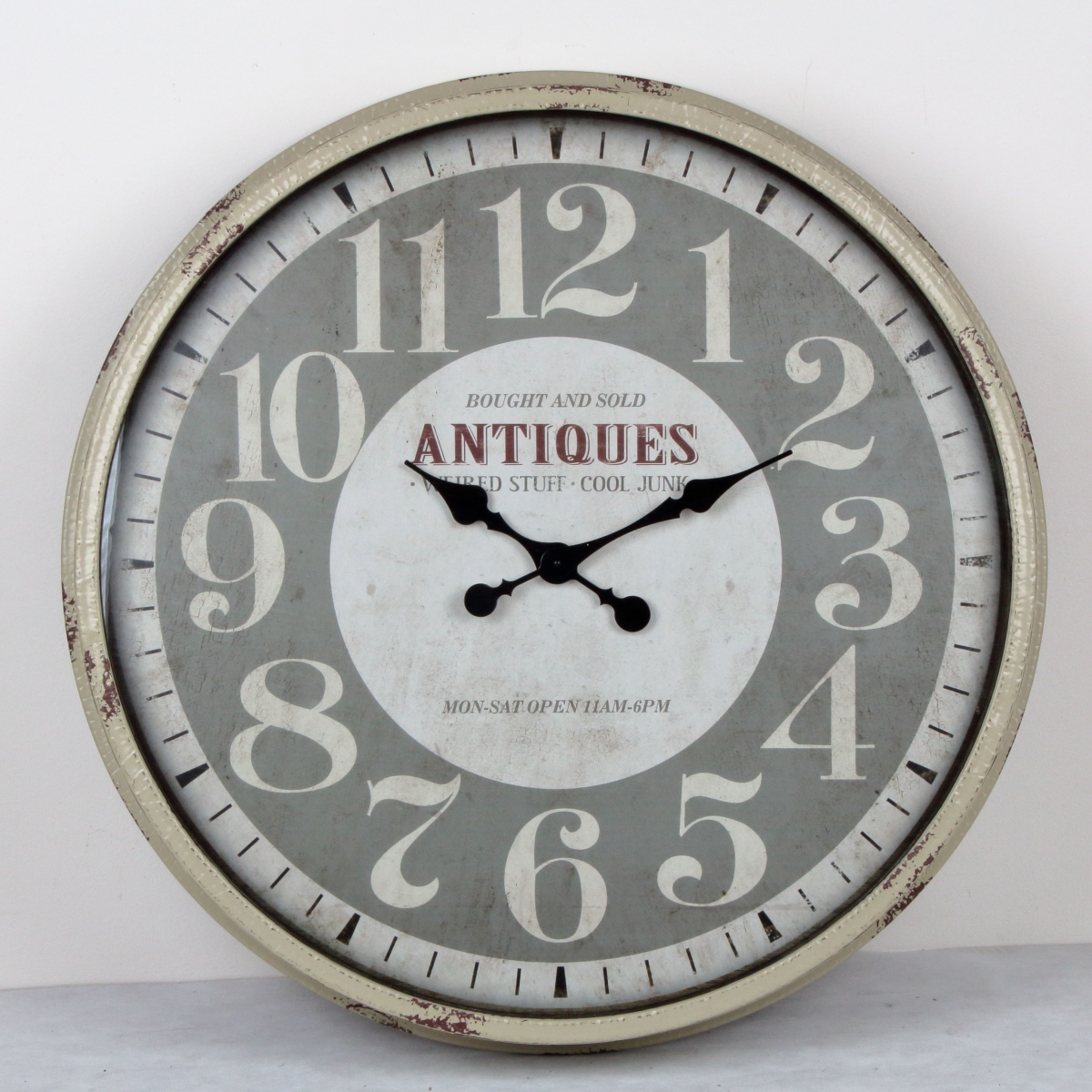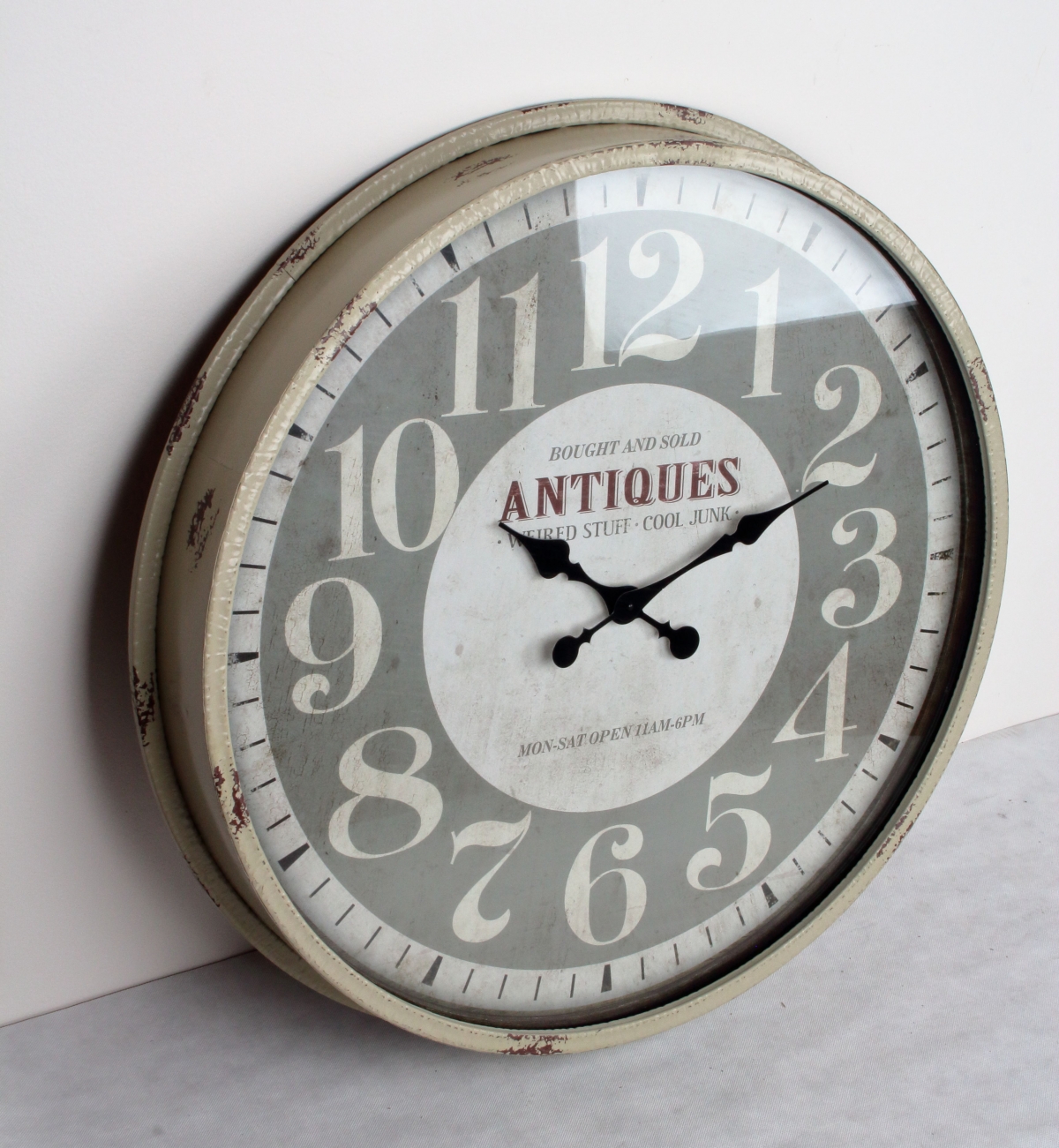 Nástenné hodiny 80cm s veľkými výraznými číslicami, v ošarpanej vzhľade.