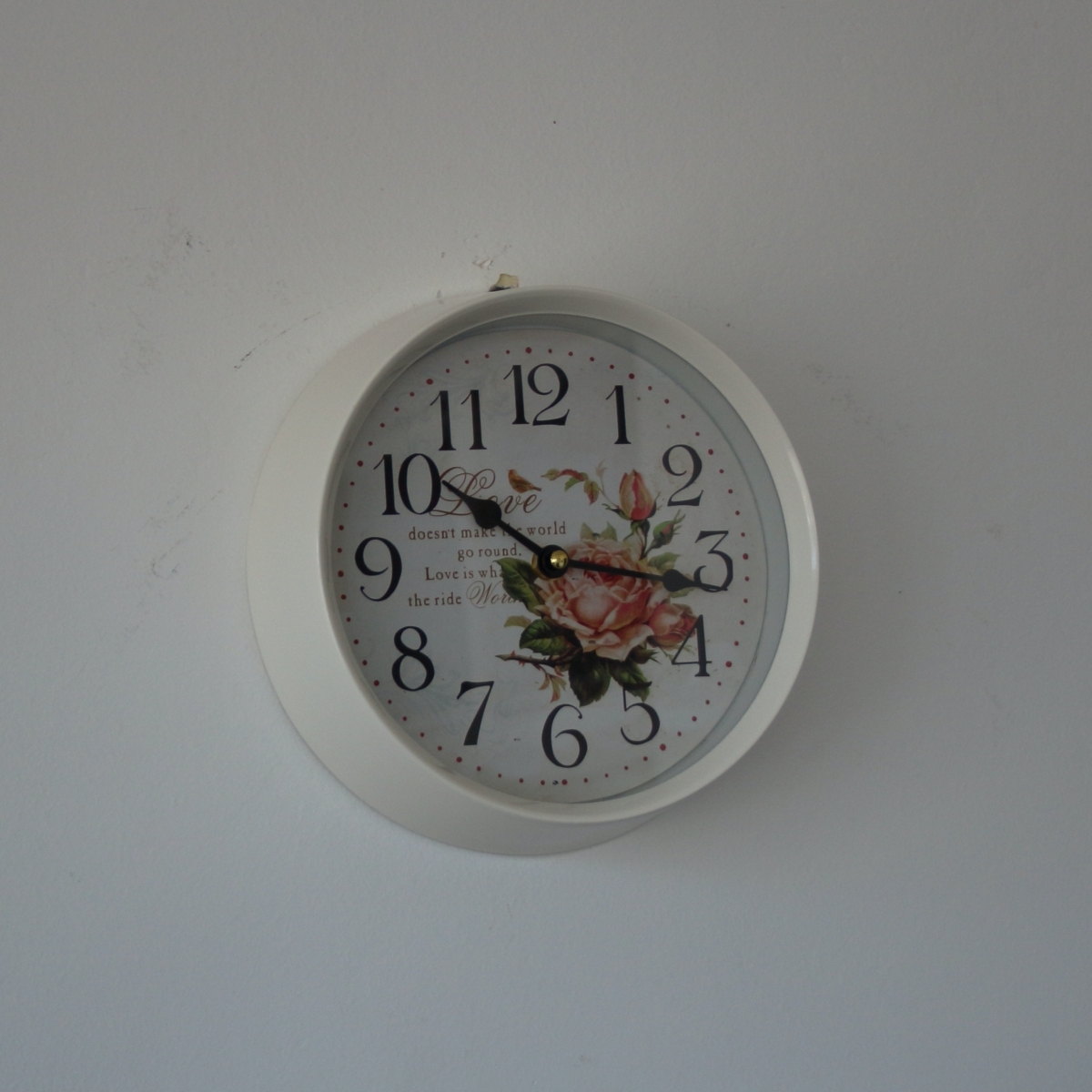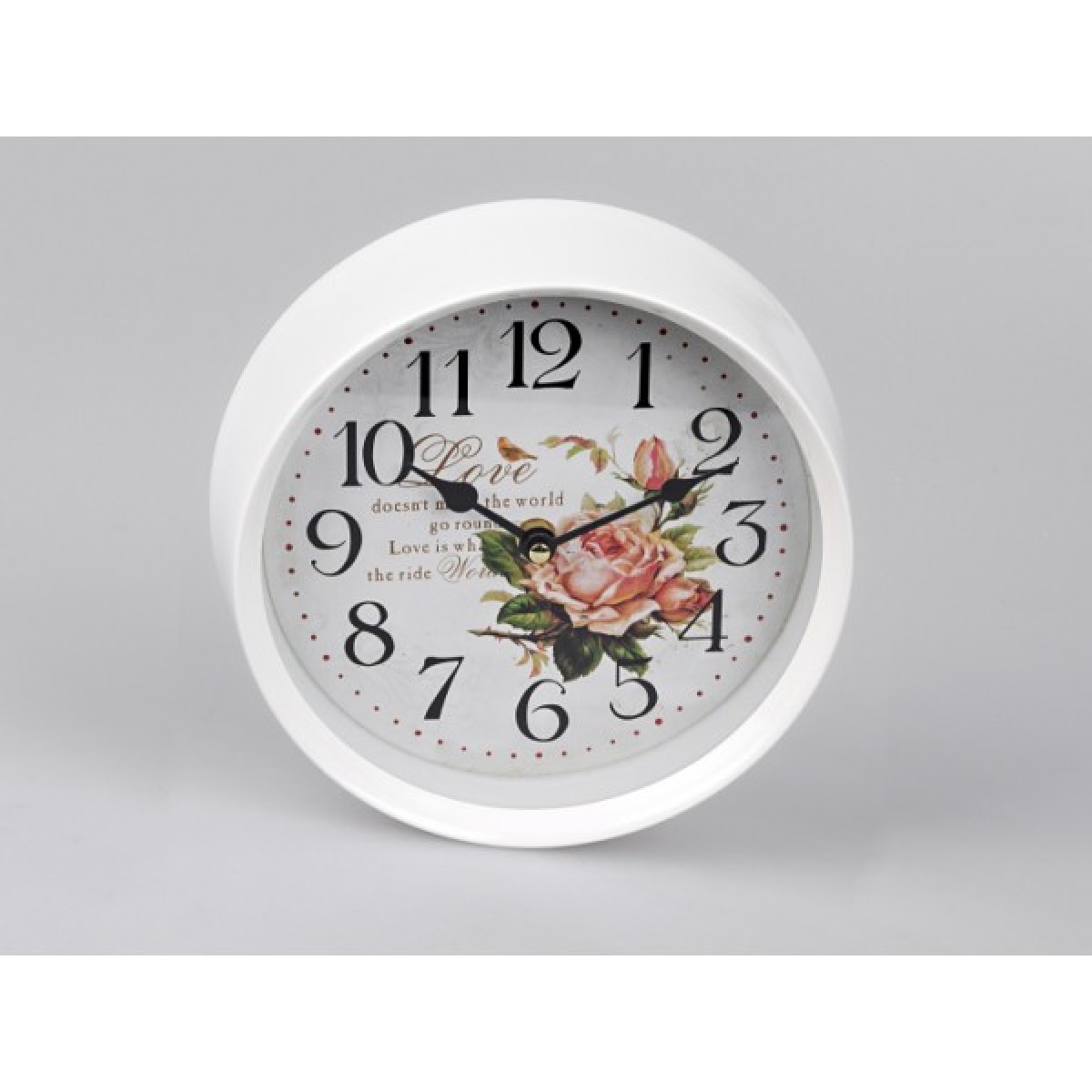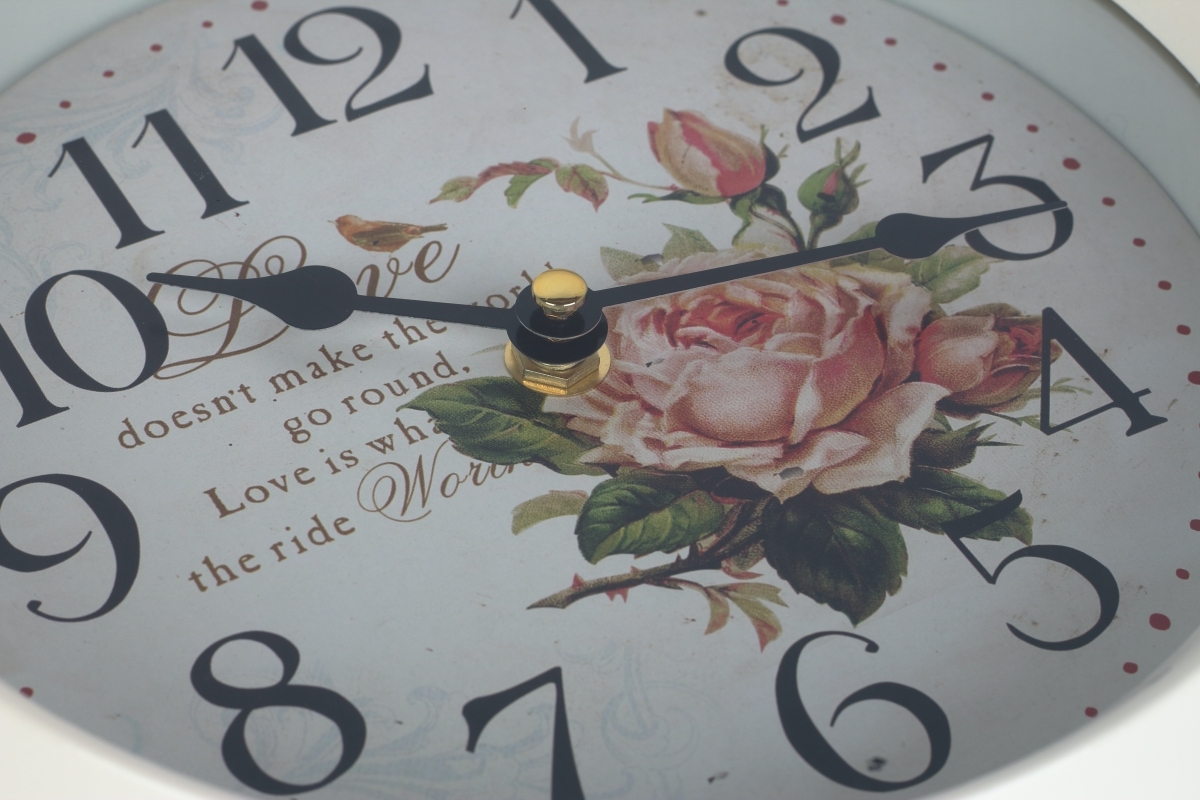 Nástenné hodiny biele s ruží kov 22cm