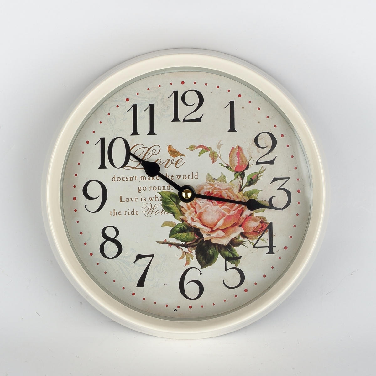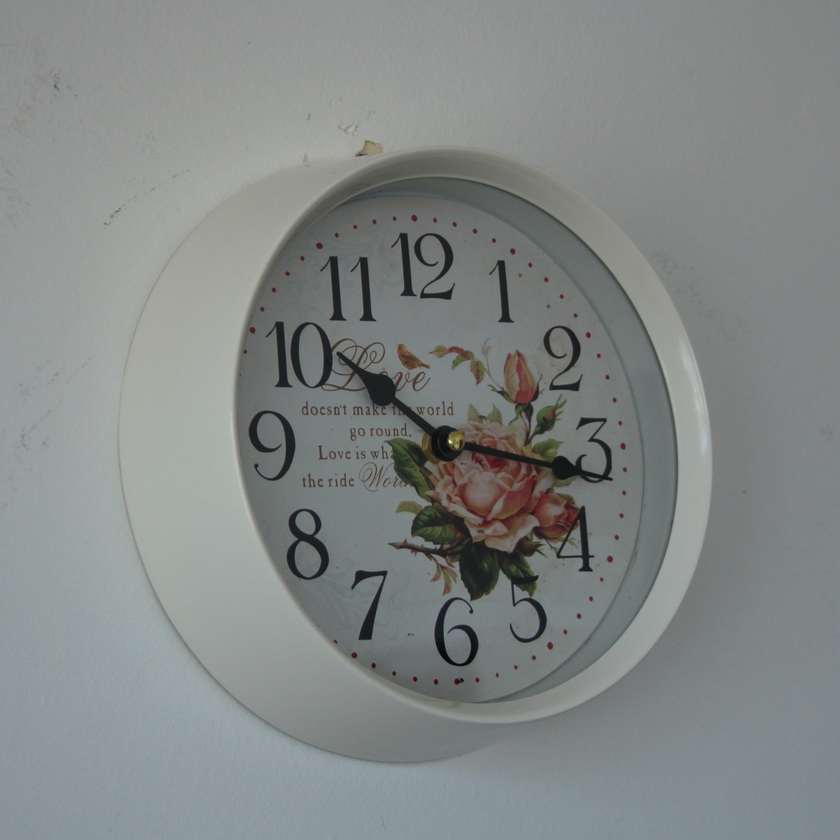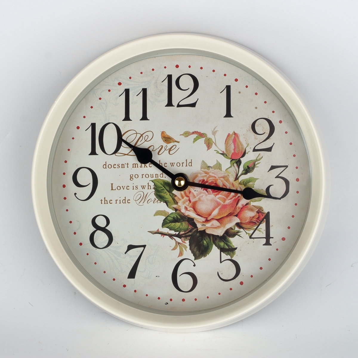 Nástenné hodiny biele s ruží kov 22cm