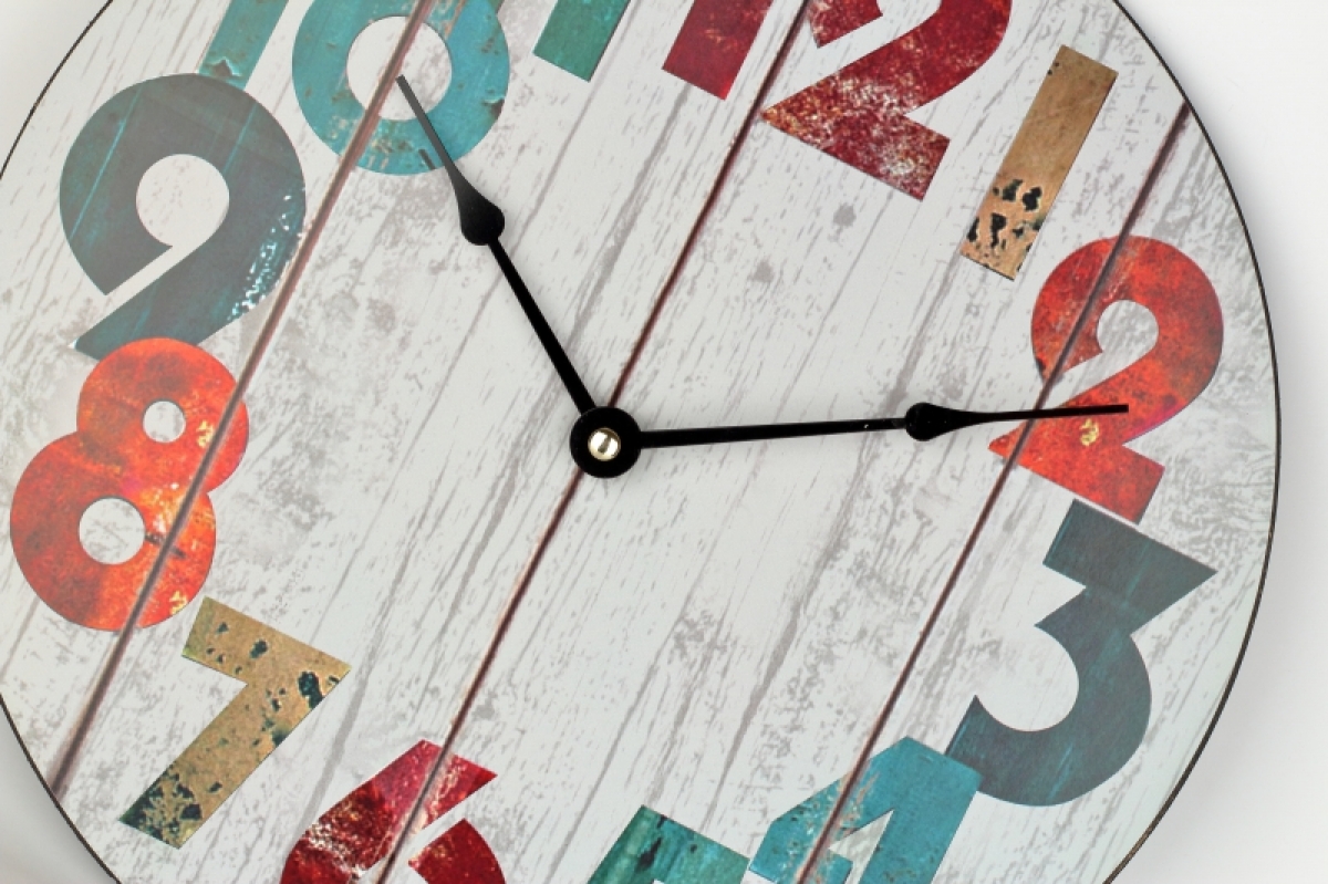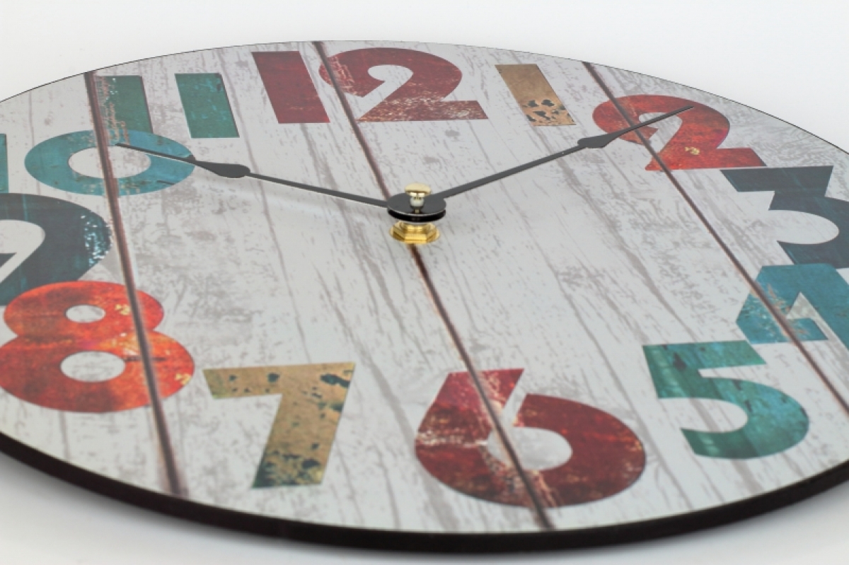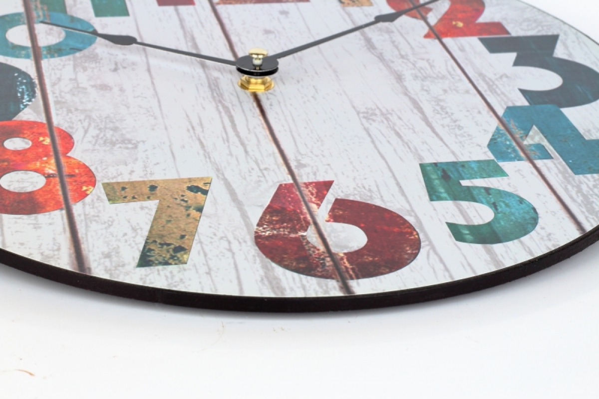 Nástenné hodiny do detskej izby 30cm s veľkými farebne číslami poteší určite nielen deti, ale hodí sa aj do interiéru zariadených v obľúbenom retro štýle.
