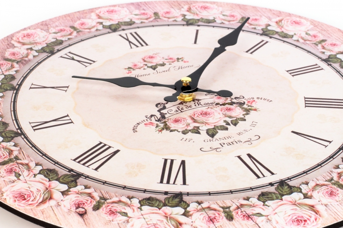 Nástenné hodiny do kuchyne ruže 34cm vnesú do kuchyni štipku romantiky. Doplňte stoličky sedáky v pastelových farbách, stôl pekným obrusom a premena kuchyne je hotová počas prá chvíľ.
