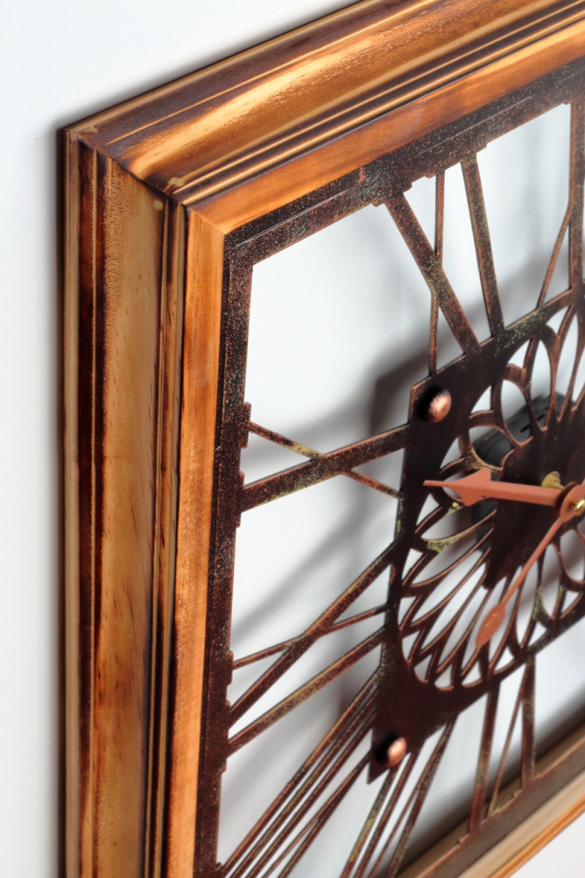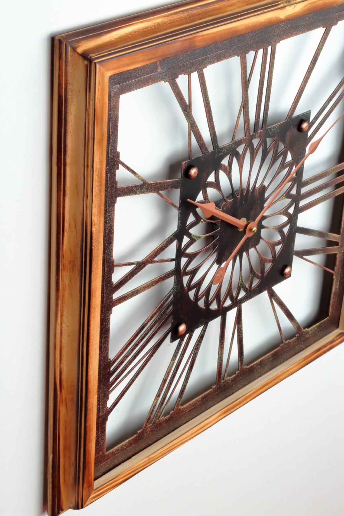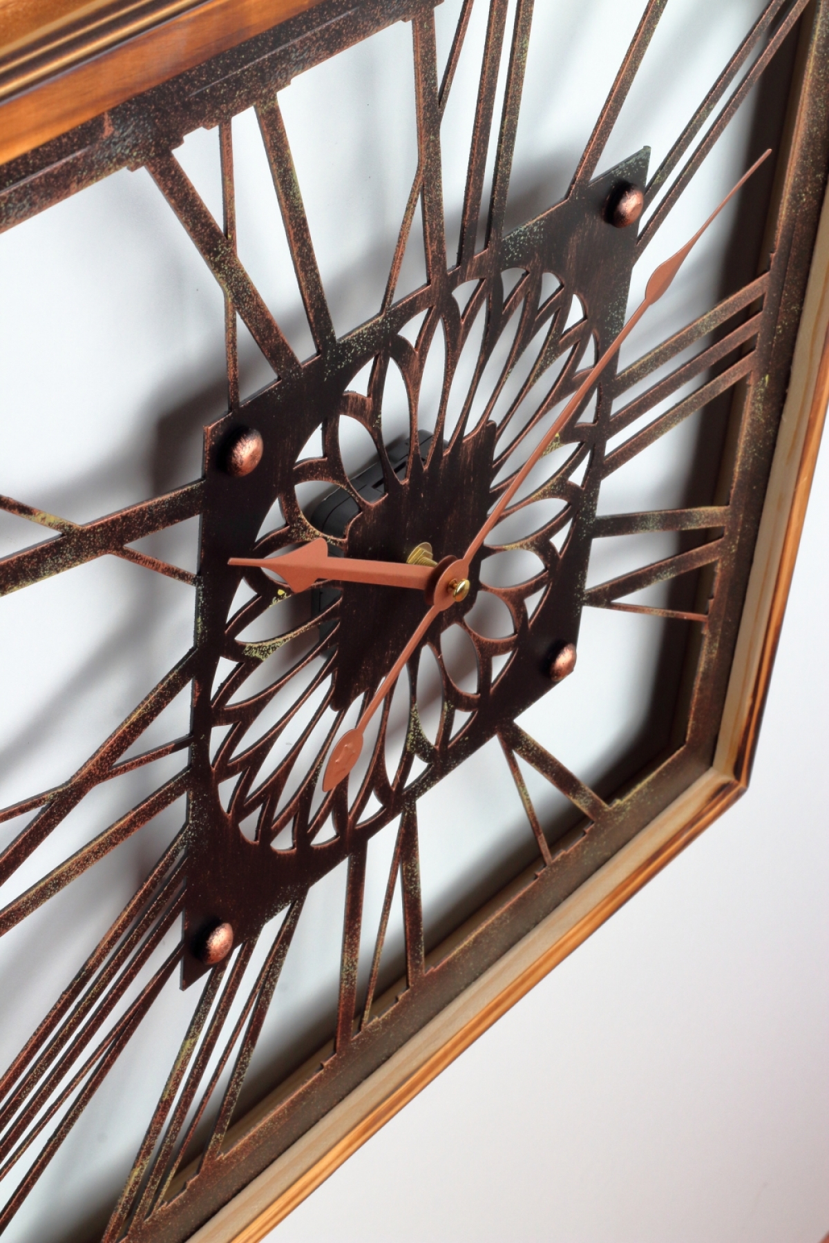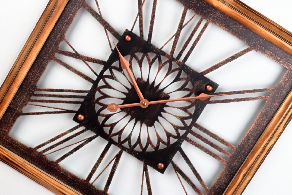 Nástenné hodiny drevené 50x50cm s krásnym rámom a zdobeným ciferníkom.