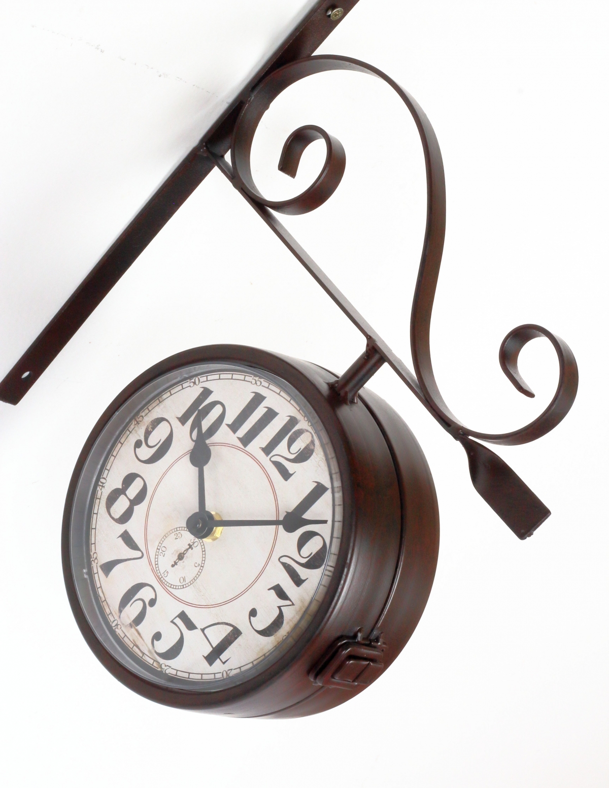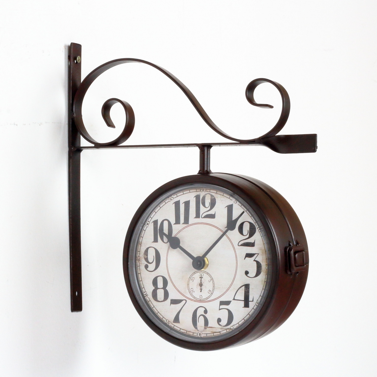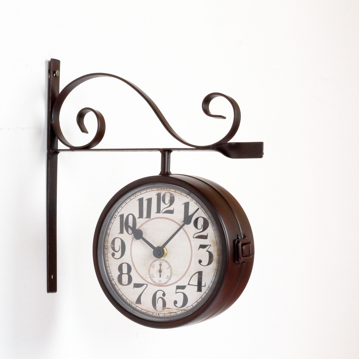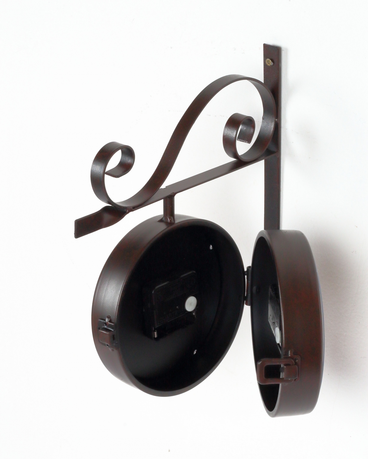 Nástenné hodiny obojstranné kovové 25,5x30cm, priemer 16cm
