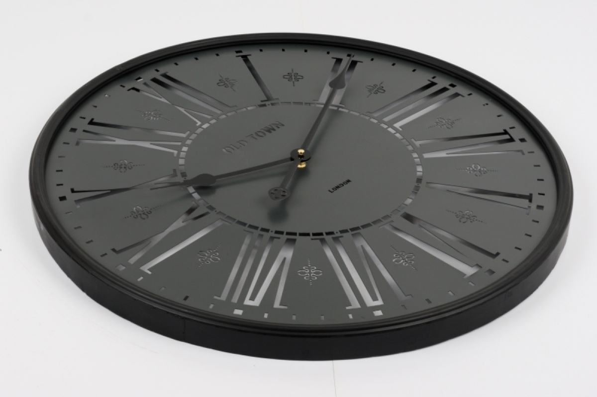 Nástenné hodiny OLD TOWN London 60cm zaujmú svojim jedinečným prevedením. Nemajú plný ciferník a cez výrezy tak je vidieť stena, na ktorej sú zavesené. Na každej stene tak môžu hodiny vyzerať inak.