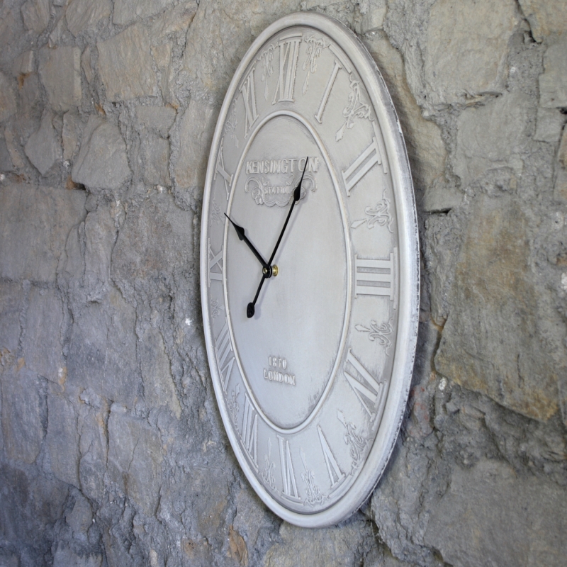 Nástenné hodiny oválne Kensington biele 63cm sú naozaj jedinečným kúskom v našej ponuke! Oválne hodiny v decentnom farebnom prevedení s patinou osloví predovšetkým milovníkov starých čias.