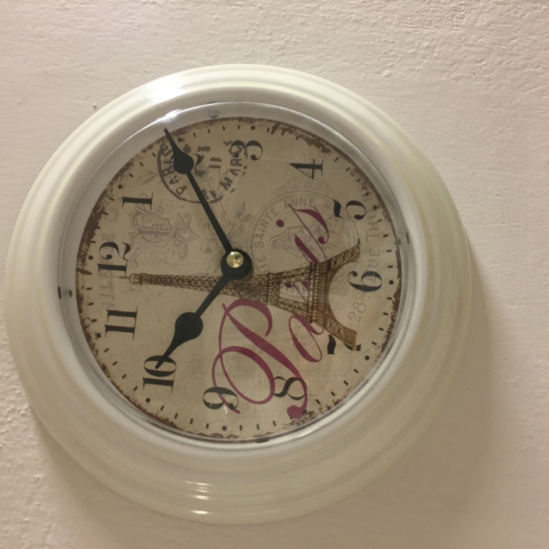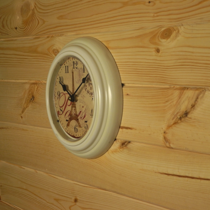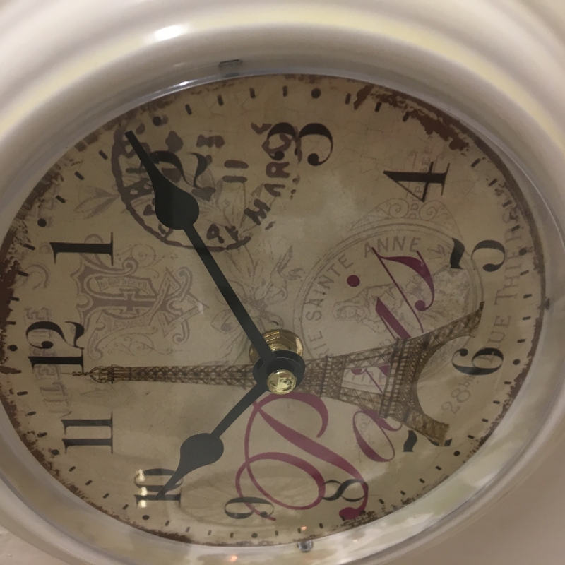Interiérové hodiny vo francúzskom štýle - biela farba a motív Eiffelovej veže v nás prebúdza spomienky na dovolenku vo Francúzsku.