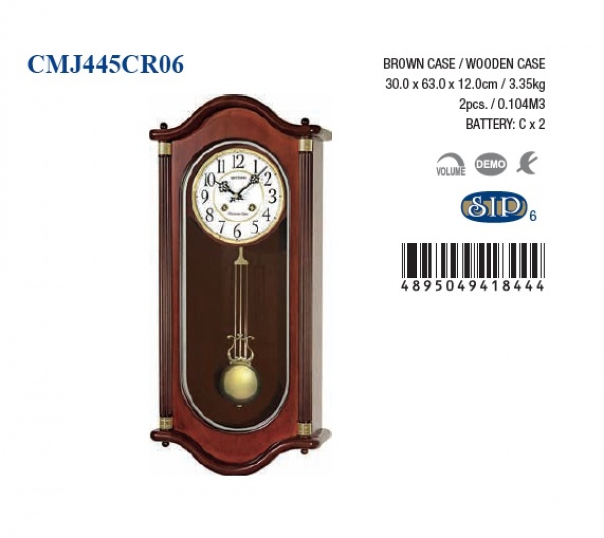 Nástenné hodiny s kyvadlom majú veľký výber melódií a dva štýly odbíjania - buď raz za hodinu alebo každú štvrťhodinu. Majú možnosť zapnutia automatického nočného režimu. Ciferník je vďaka arabským čísliciam veľmi dobre čitateľný.