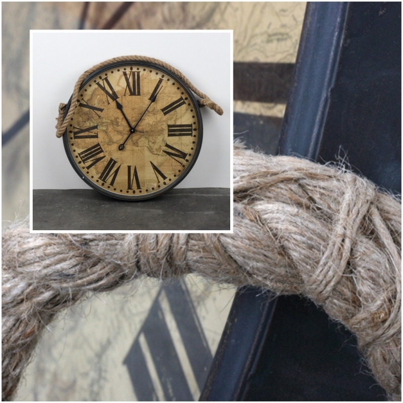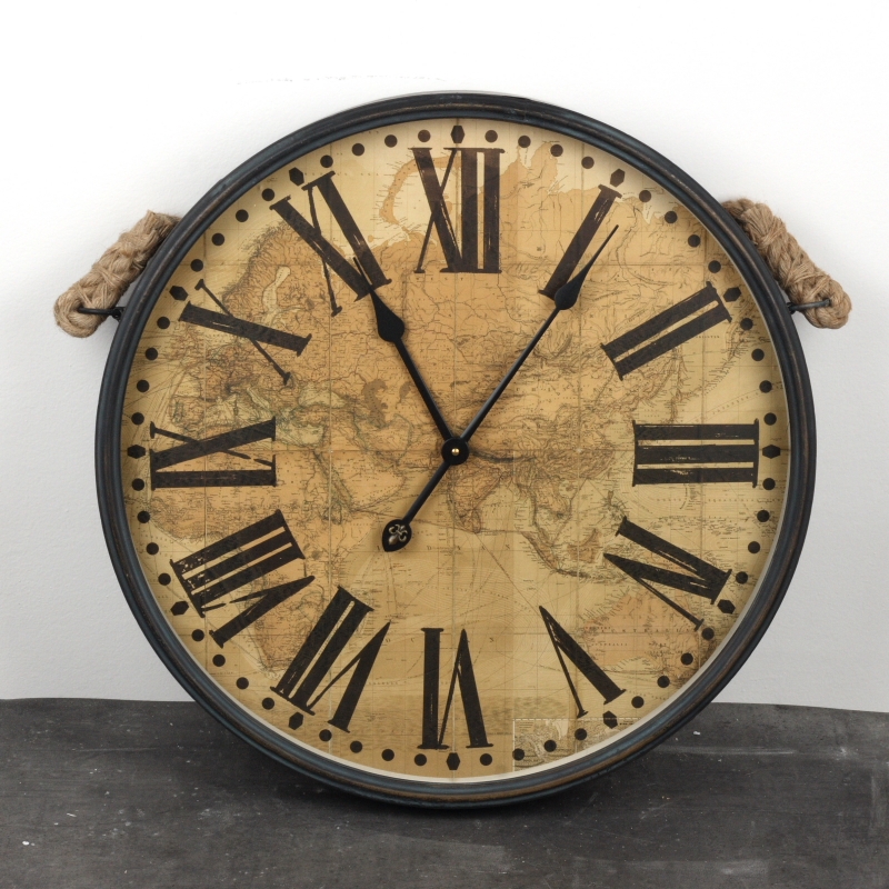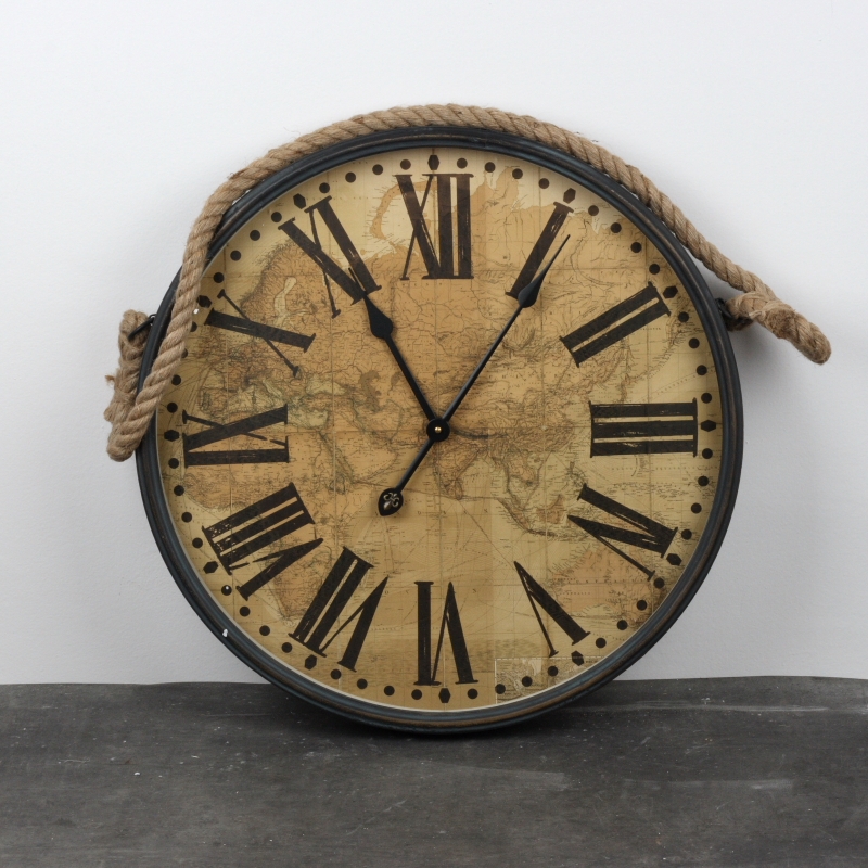 Nástenné hodiny s mapou a lanom 60cm zaujmú na prvý pohľad nielen ciferníkom s potlačou mapy sveta, ale aj pripevneným lanom, za ktoré možno hodiny zavesiť na stenu.
