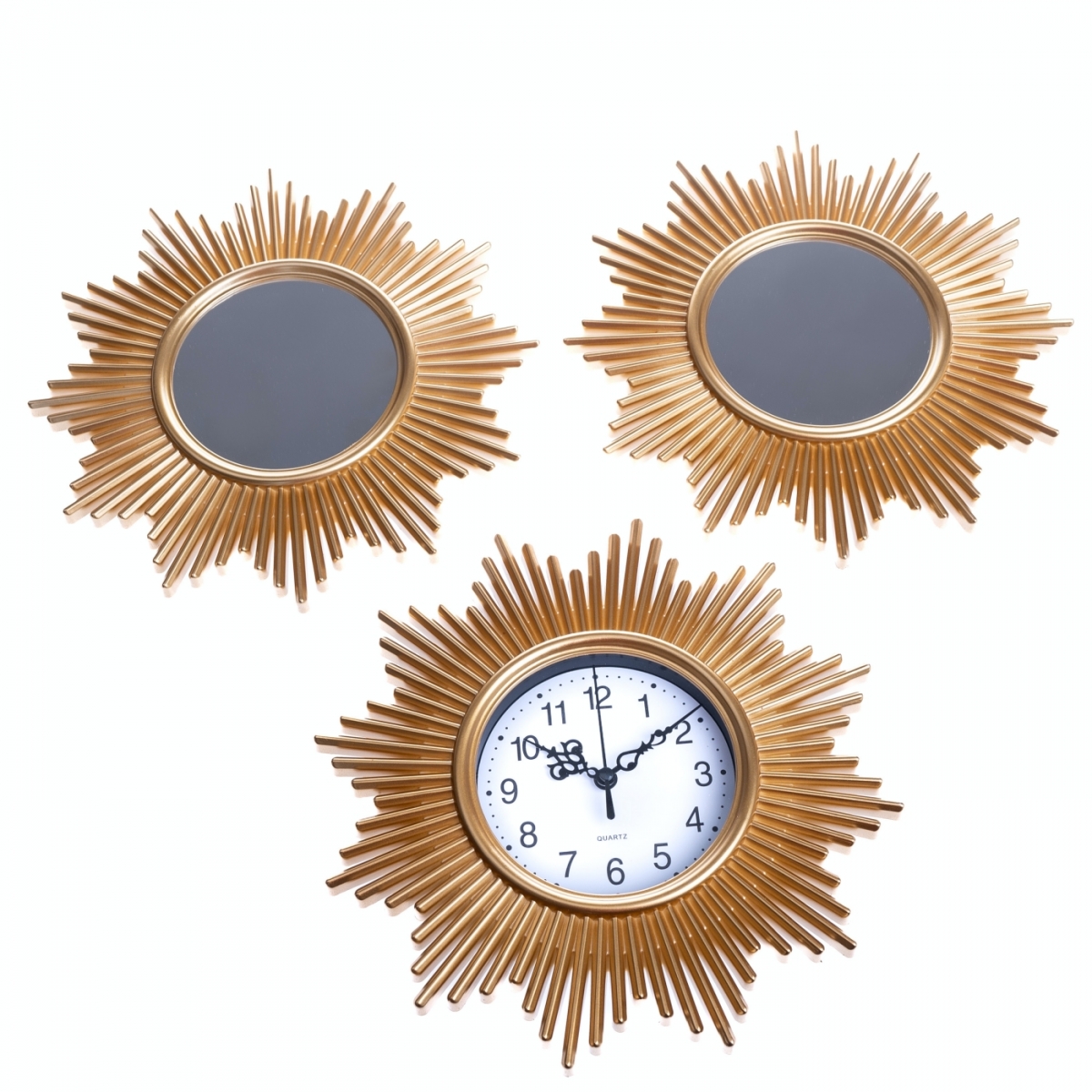 Zariaďujete nový interiér, alebo potrebujete doplniť existujúci? Táto sada je skvelým riešením aj do malého priestoru. Za jednu cenu získate tri výrobky, ktoré sa skvele dopĺňajú. Kontrola času na nástenných hodinách, posledná úprava účesu pred odchodom z domu a už zostáva len vykročiť pravou nohou!