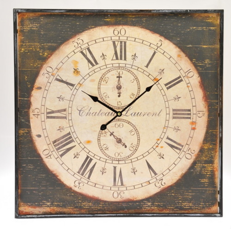 Nástenné hodiny dizajnové štvorcové 60x60cm vo vidieckom štýle.