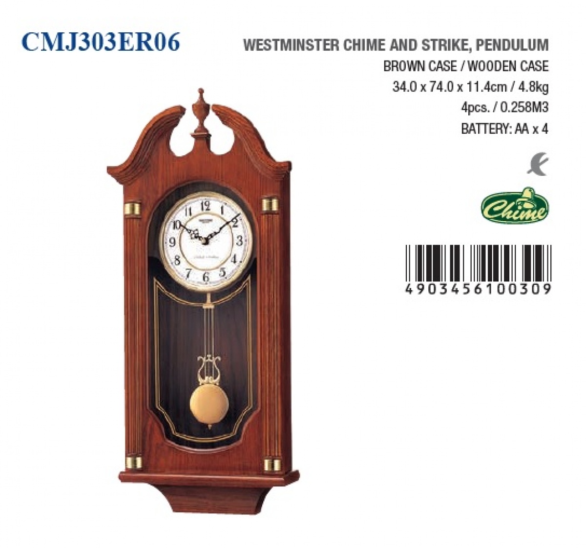 Nástenné kyvadlové hodiny umožňujú zapnutie automatického nočného režimu - tak, aby ste mali nerušené spanie. Hodiny odbíja v režime Westminster - buď raz za hodinu alebo každú štvrťhodinu.