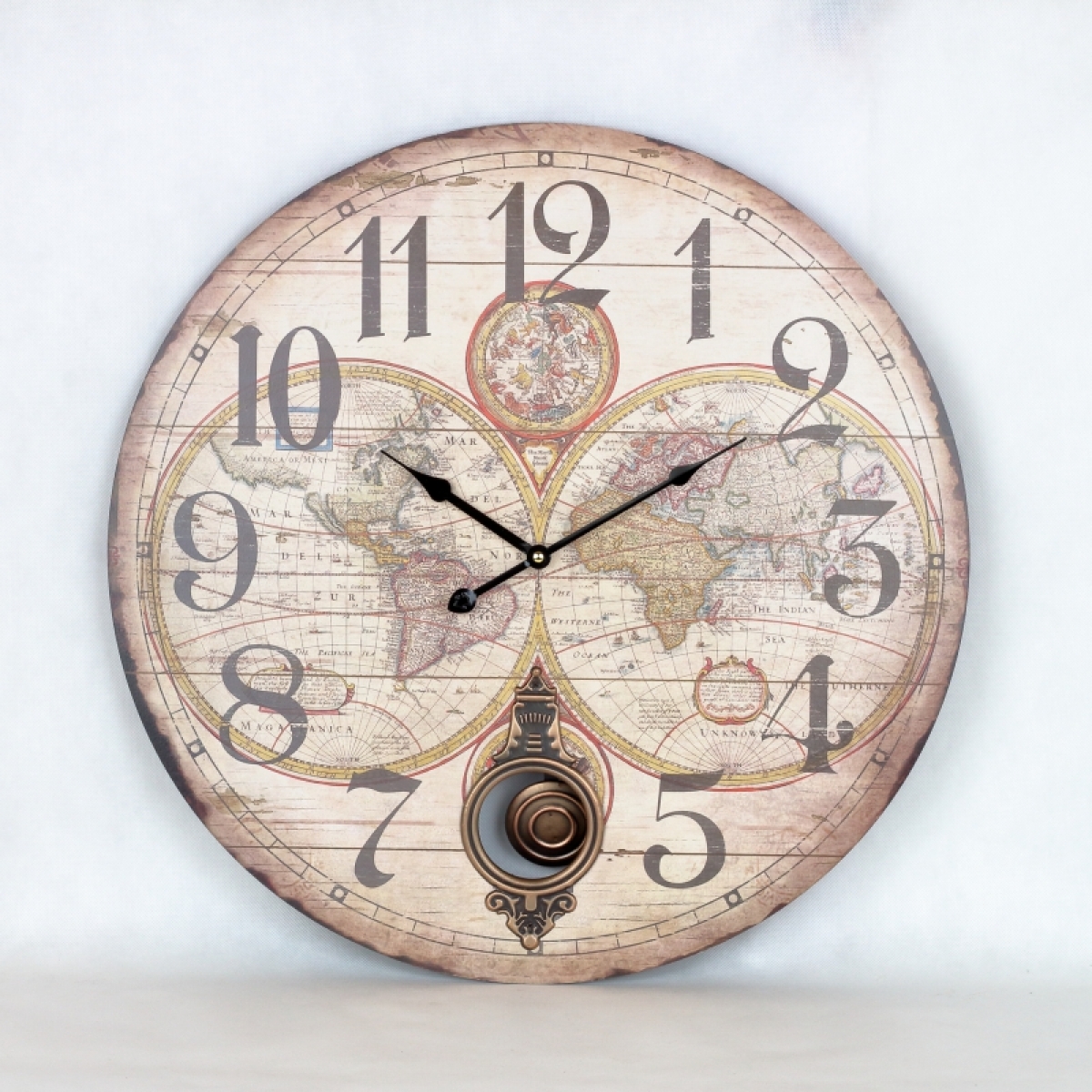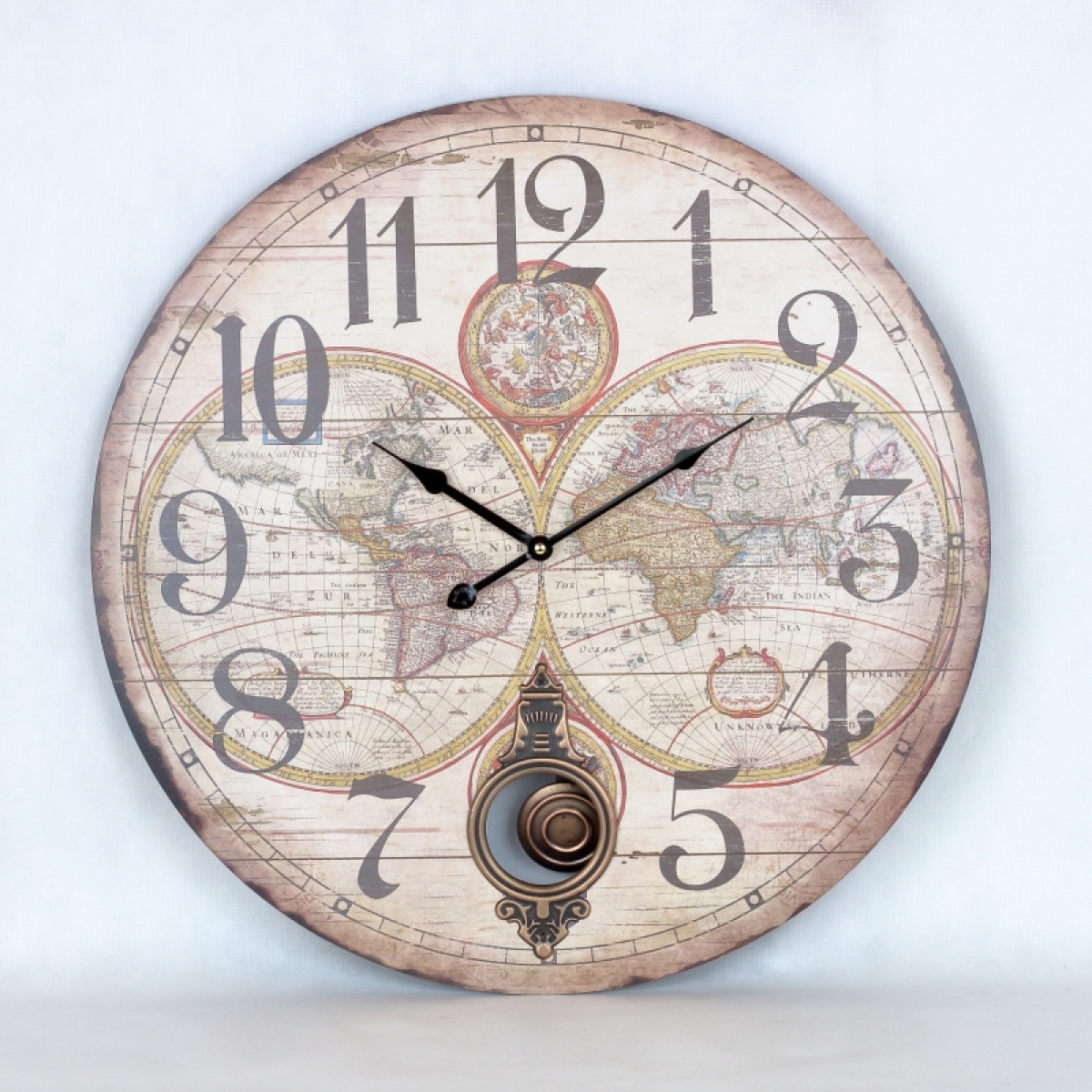 Nástenné kyvadlové hodiny mapa sveta 58cm