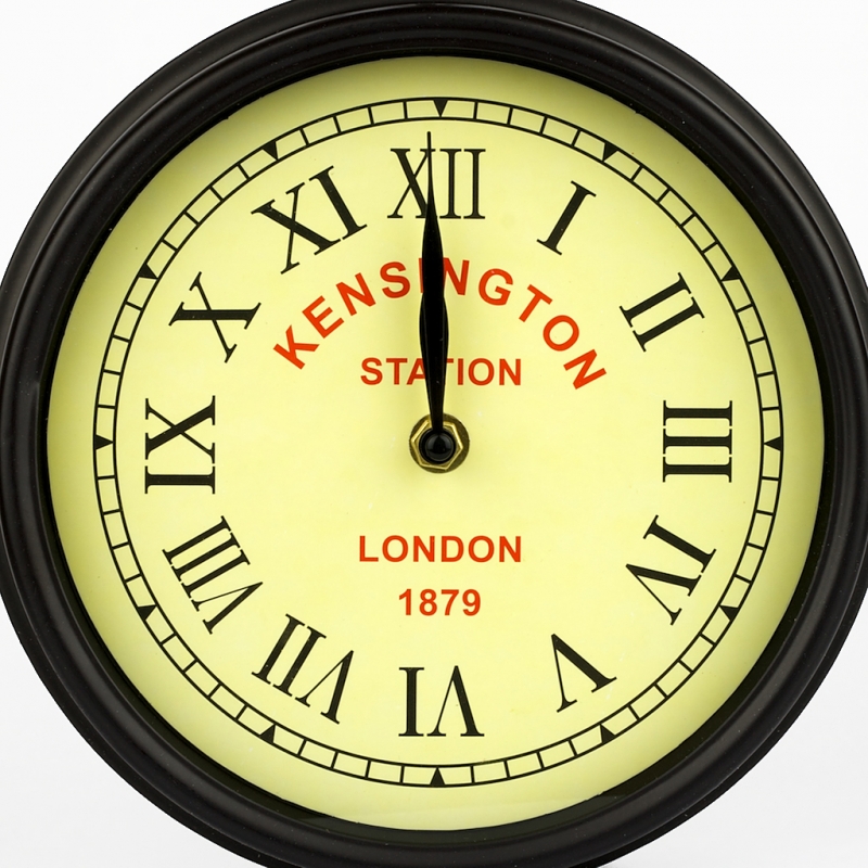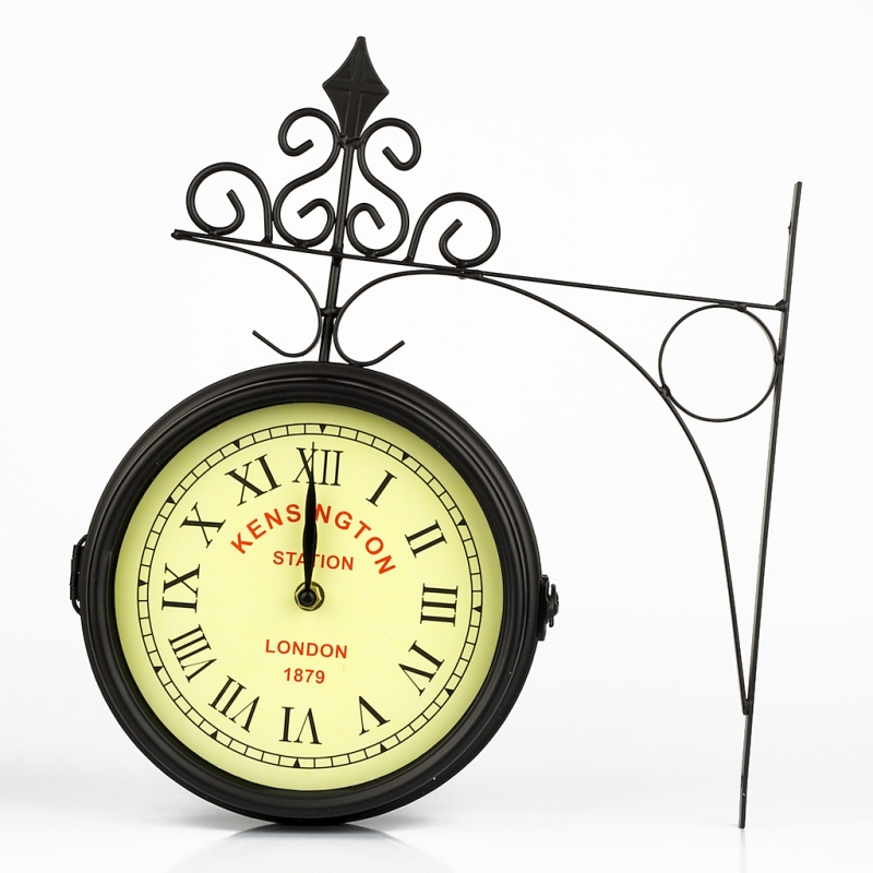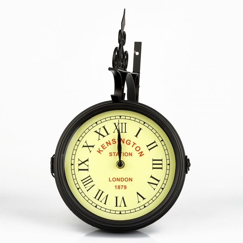 Nástěnné hodiny oboustranné Kensington station London 1879 35x38x9cm s průměrem ciferníku 20cm, se stávají nepřehlédnutelnou překrásnou dekorací v retro stylu.