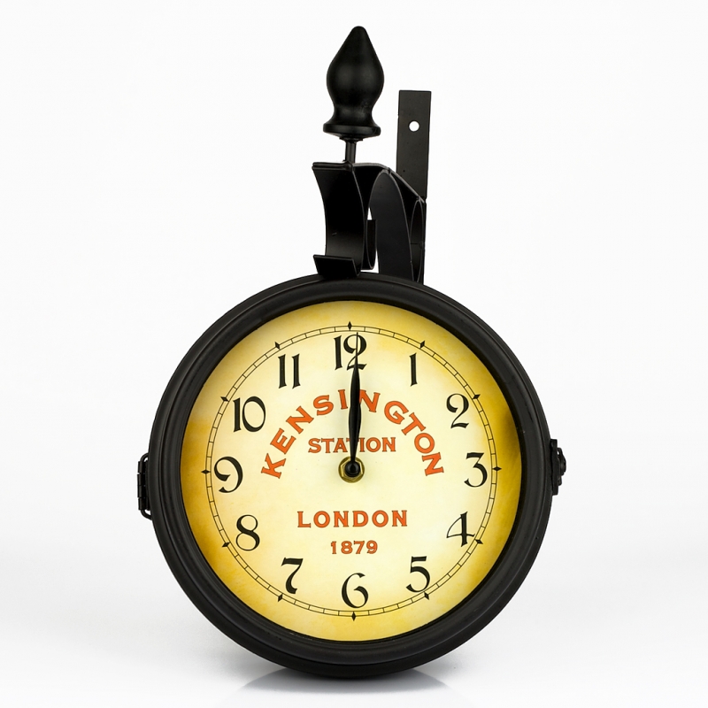 Nástěnné oboustranné hodiny Kensington Station London 1879 36x37x9cm s průměrem ciferníku 20cm, se stávají nepřehlédnutelnou překrásnou dekorací v retro stylu.