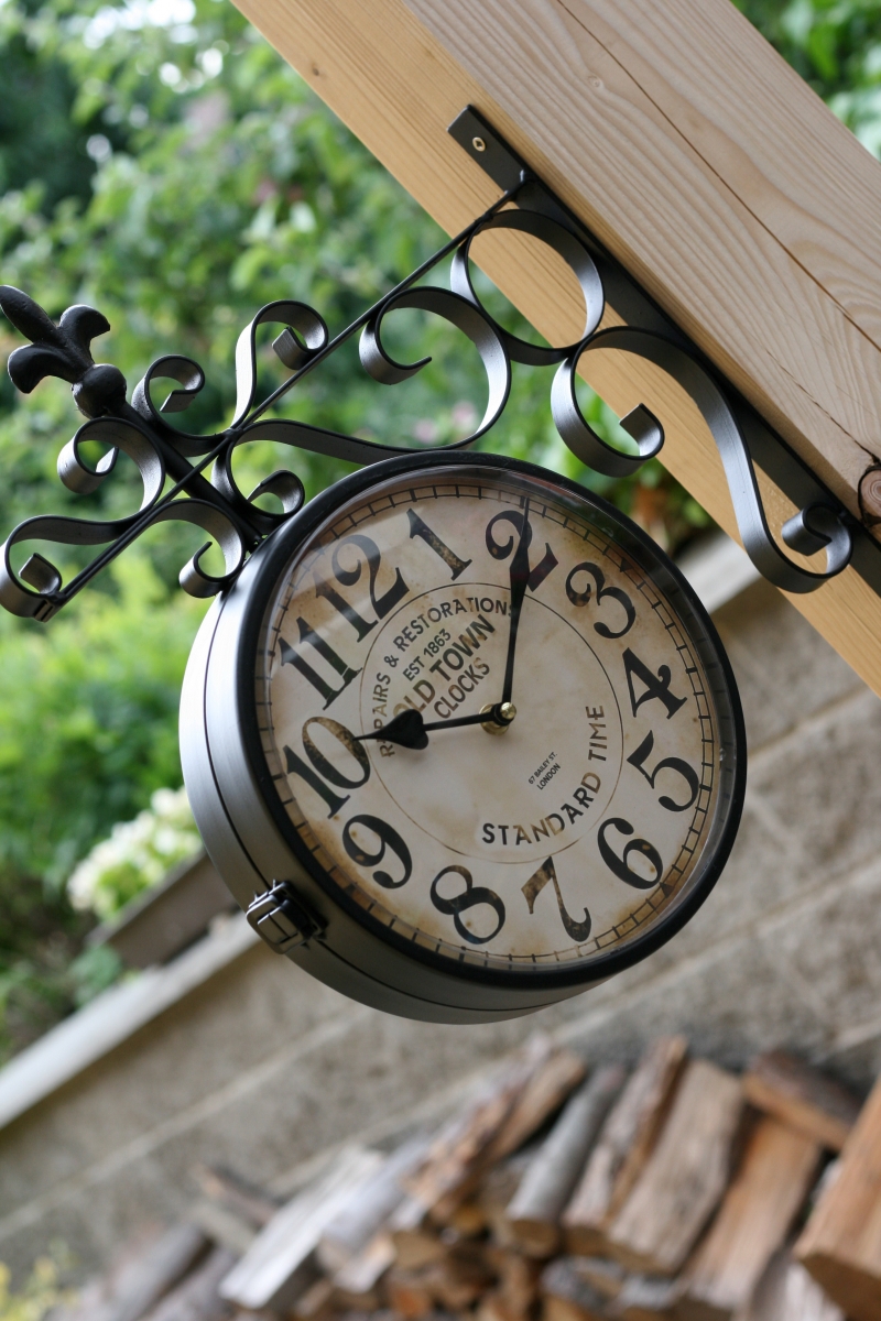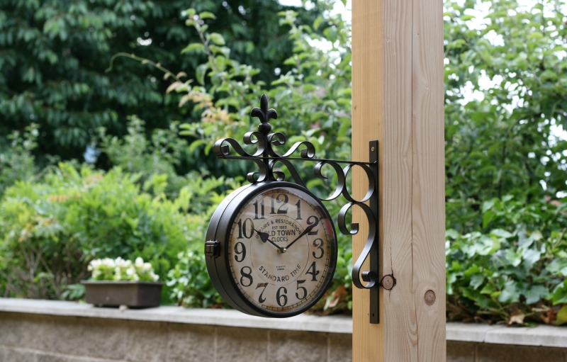 Obojstranné hodiny sú vhodné na drevené trámy či stĺpy v interiéri aj exteriéri (pod zastrešenou terasou). Môžete je tiež umiestniť v dlhej chodbe a vždy budete mať prehľad o čase.