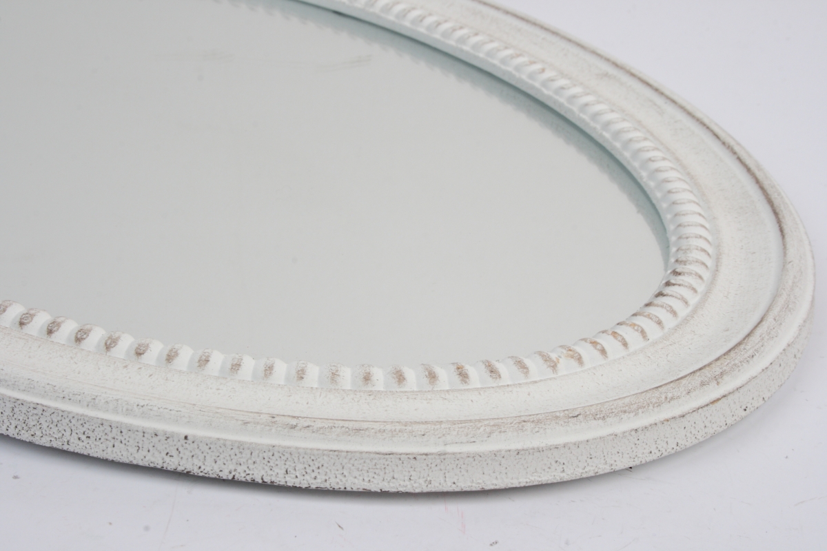 Biele oválne zrkadlo s patinou a otlčeným vzhľadom prináša do priestoru štipku atmosféry starých čias. Ak milujete dekorácia v duchu vidieckeho štýlu, určite pre toto krásne zrkadlo nejaké miesto nájdete.