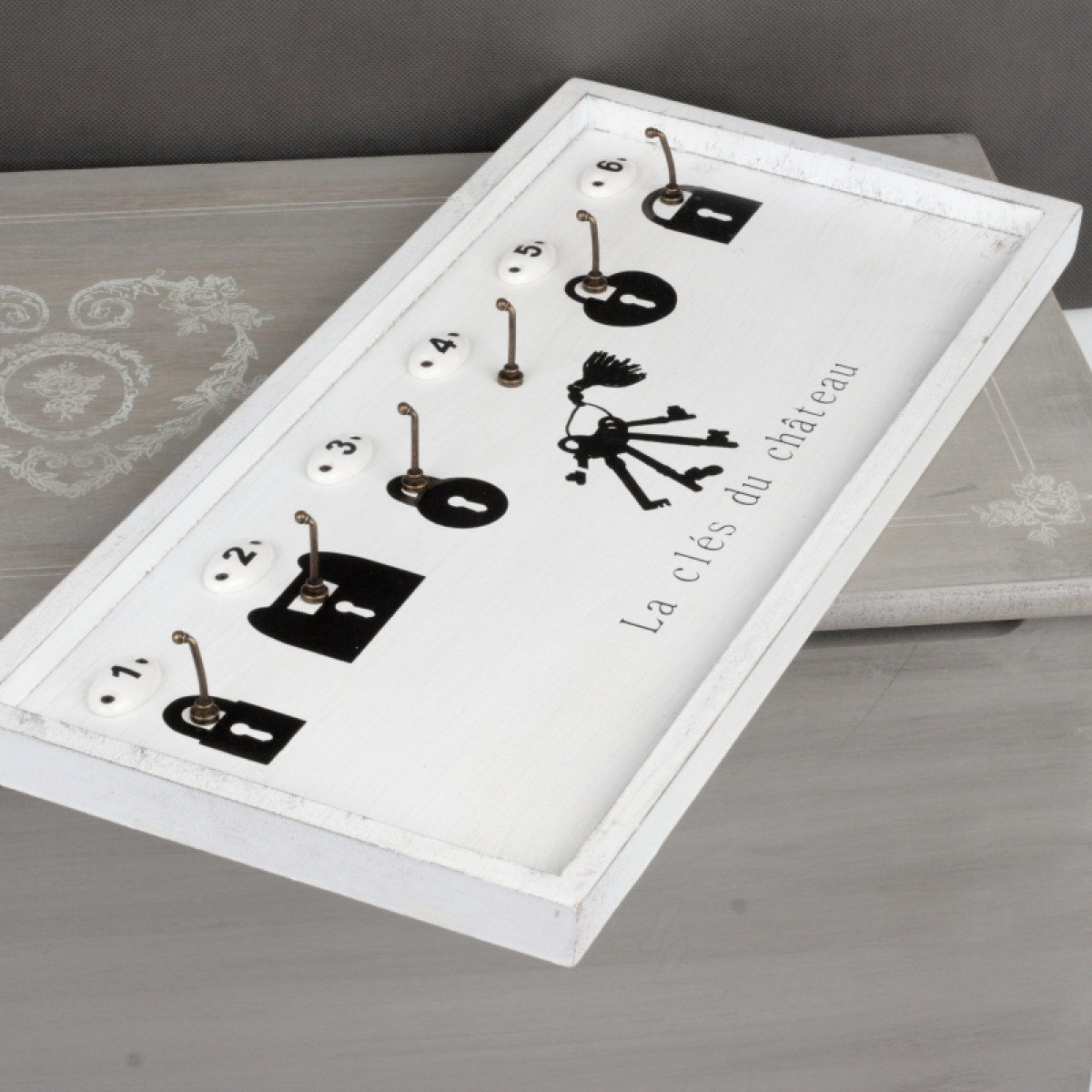 Nástenný drevený vešiak na kľúče 50x23x2cm