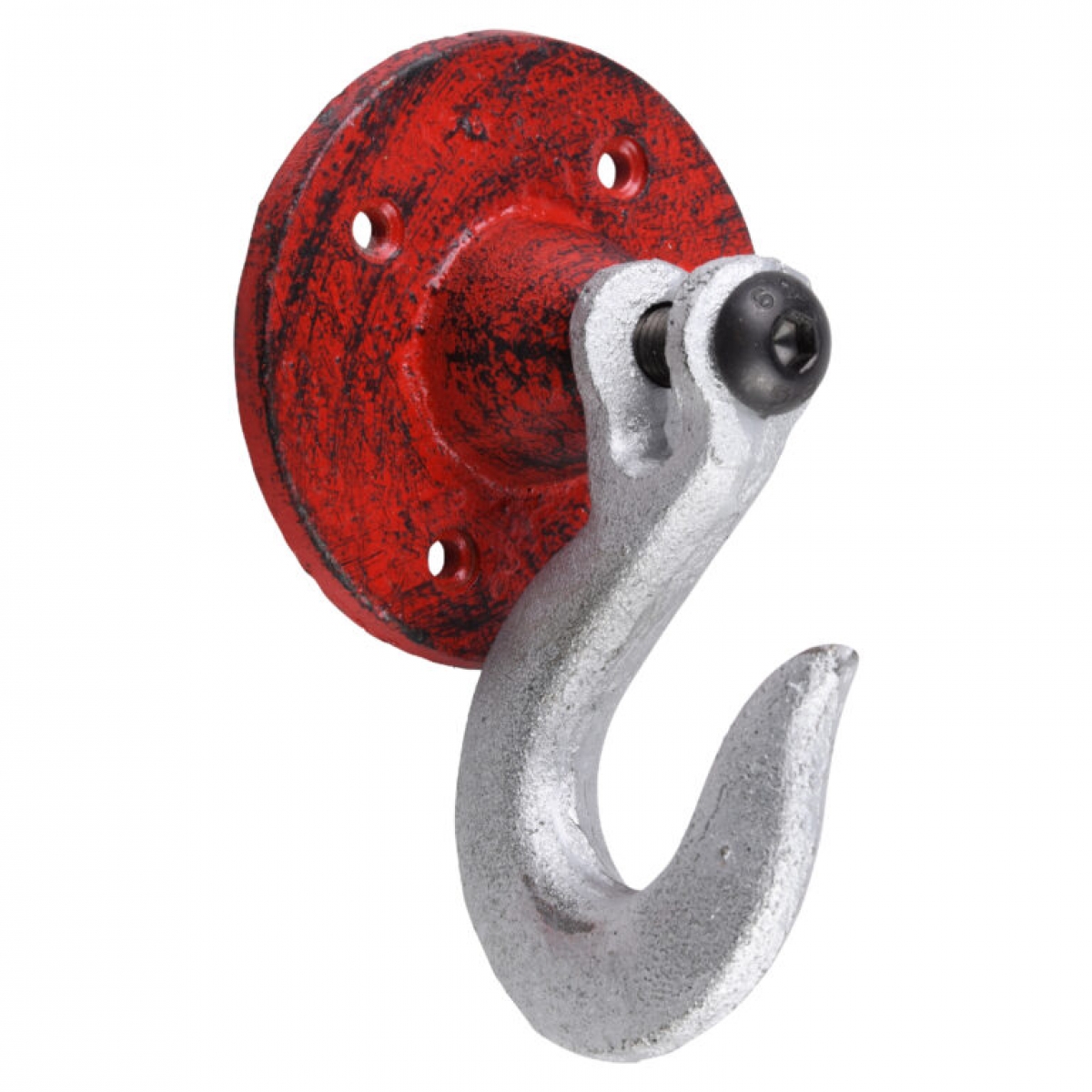 Nástenný háčik z liatiny v industriálnom štýle v červeno-šedej farebnej kombinácii