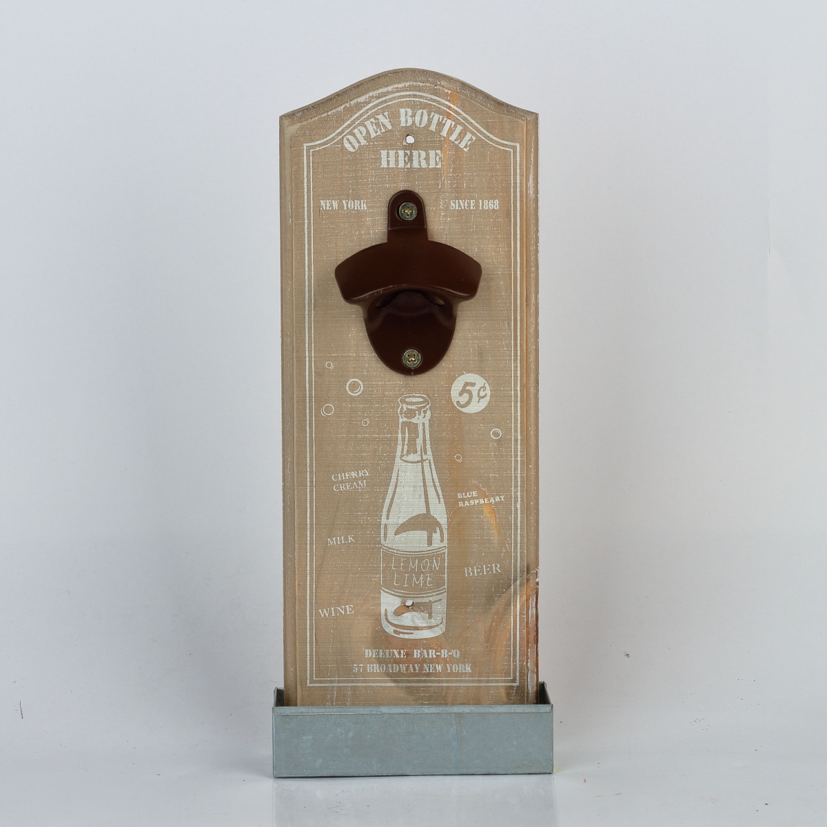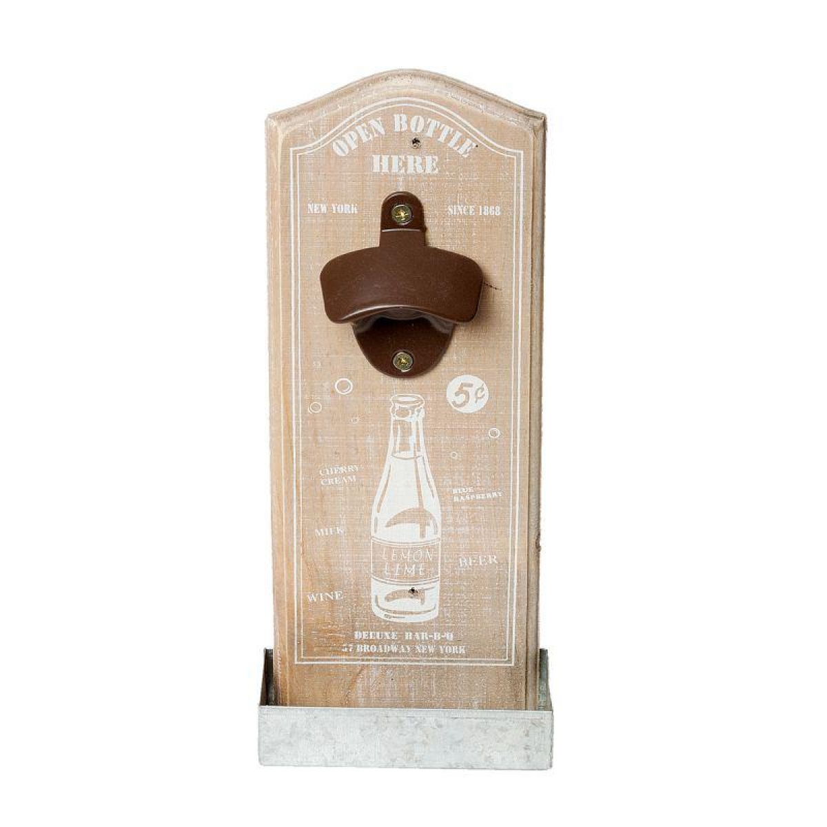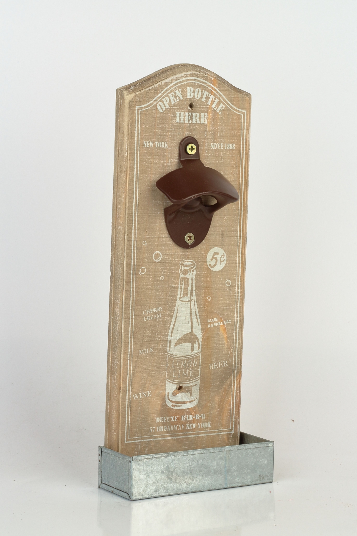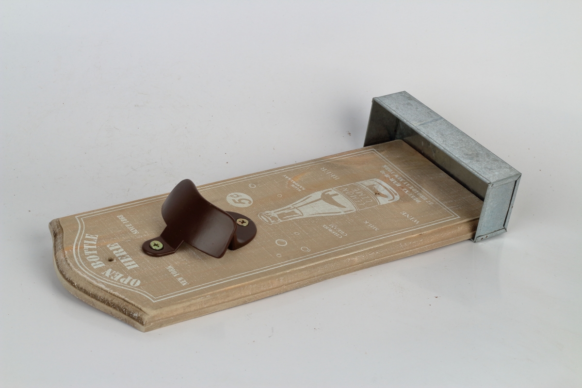 tento nástenný otvárač na fľaše má navyše na doske odkladaciu plochu na zátky. Vám tak druhý deň po party odpadne práce s ich zbieranie po všetkých kútoch domova i záhrady.