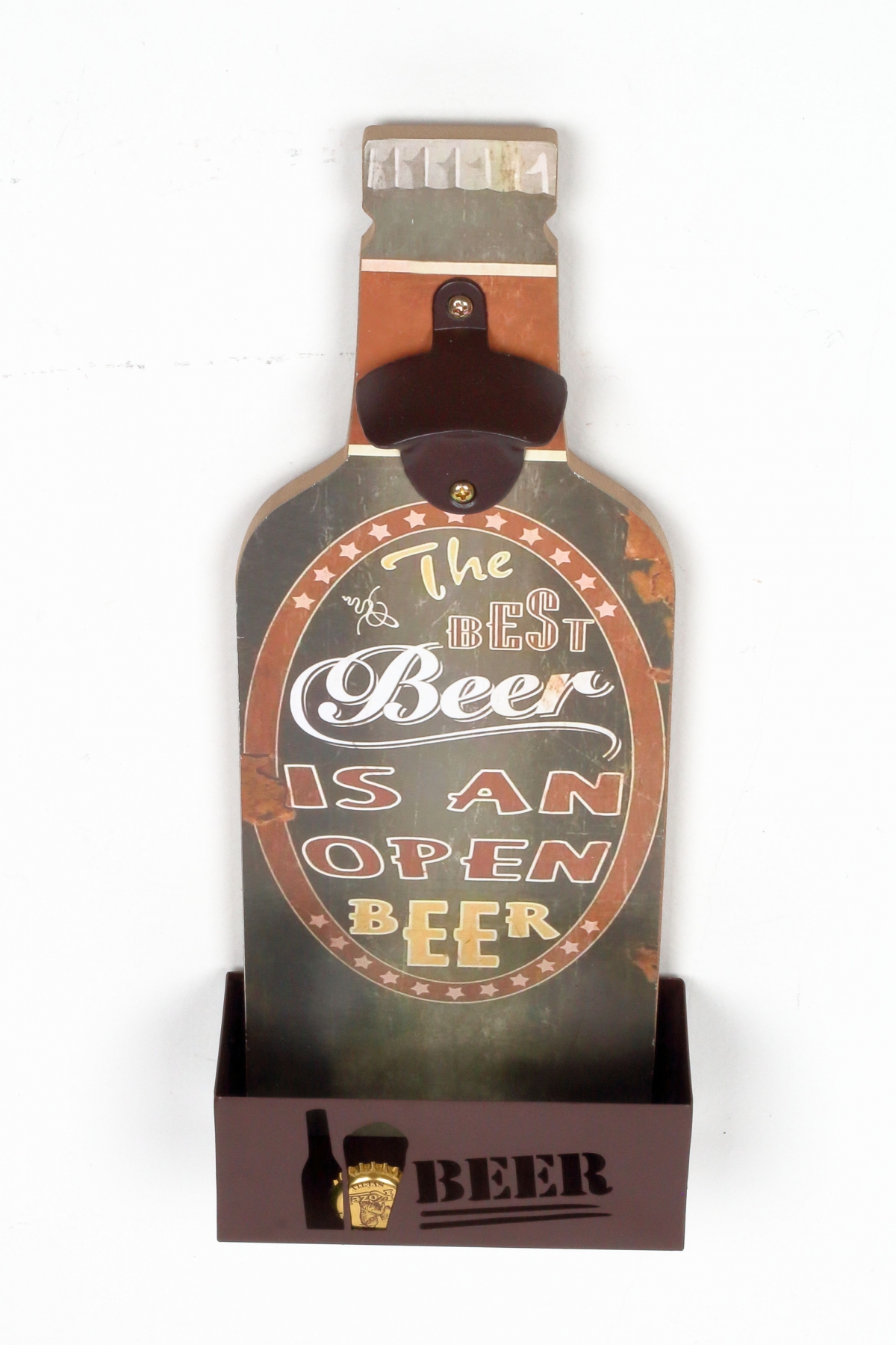 Nástenný otvárač na fľaše THE BEST BEER 14x37cm s šikovnú priehradkou na odkladanie viečok. Zabudnite na neporiadok a majte vždy otvárač pekne po ruke!