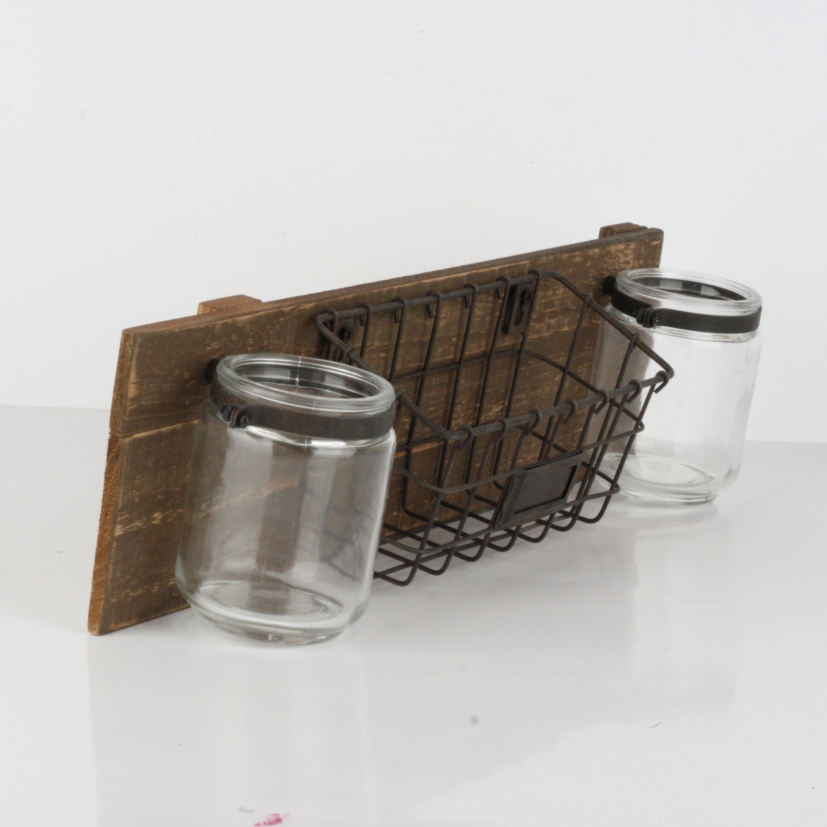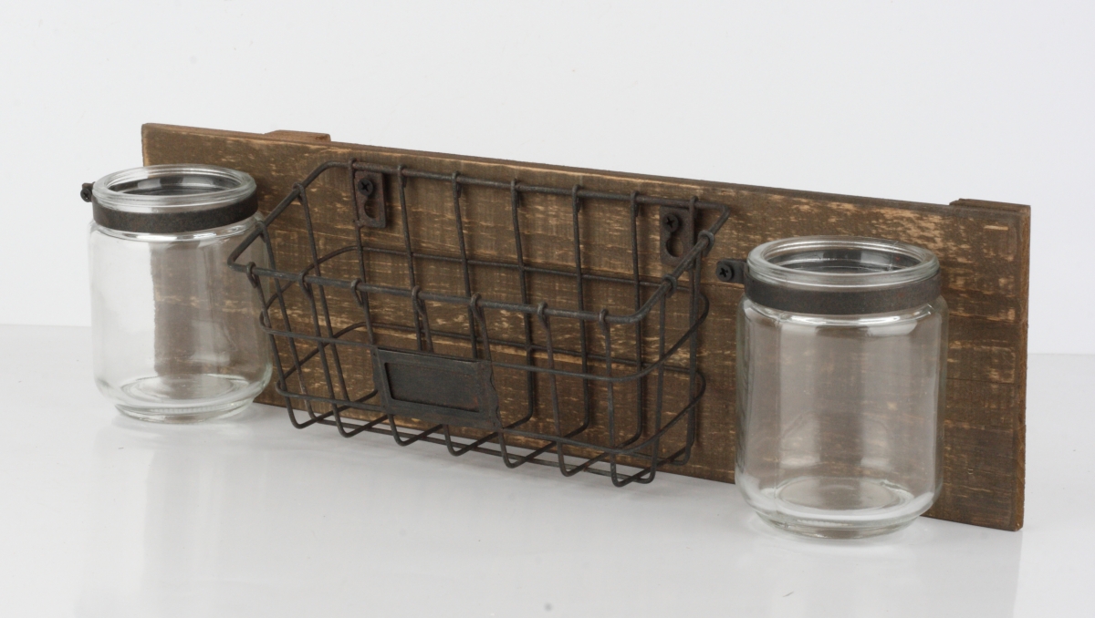 Nástenný panel s drôteným košíčkom a pohármi 40cm