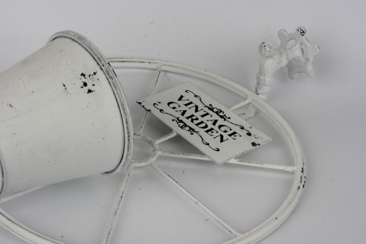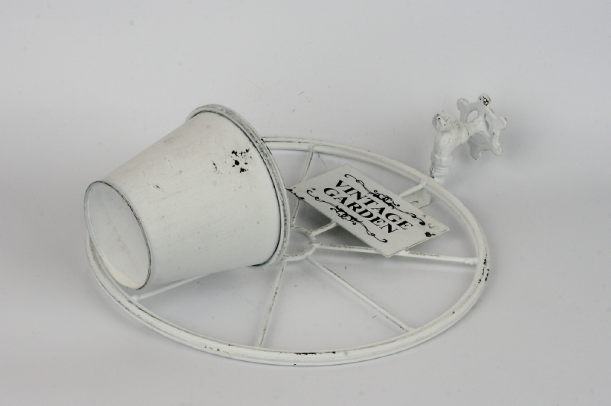 Kovová konštrukcia s kohútikom má pripevnený kvetináč, do ktorého sa úžasne hodí previsnuté rastliny. Spoločne vytvoria originálne záhradné dekoráciu.