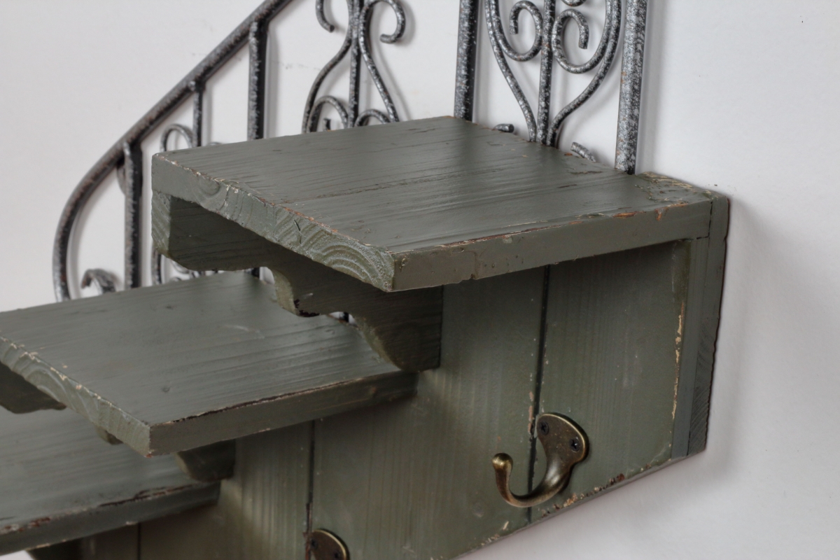 Vešiak s tromi háčikmi a tromi malými poličkami zaujme na prvý pohľad originálnym riešením a nápadom. Stavte na jedinečné kúsky, ktoré vytvoria interiér čo má štýl a šmrnc.
