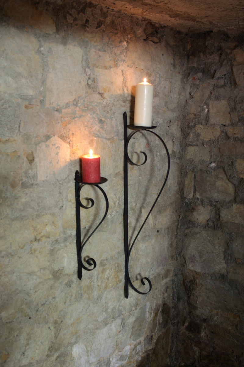 Svietnik je železný, na koncoch konzoly sú pripravené otvory na pripevnenie k stene.