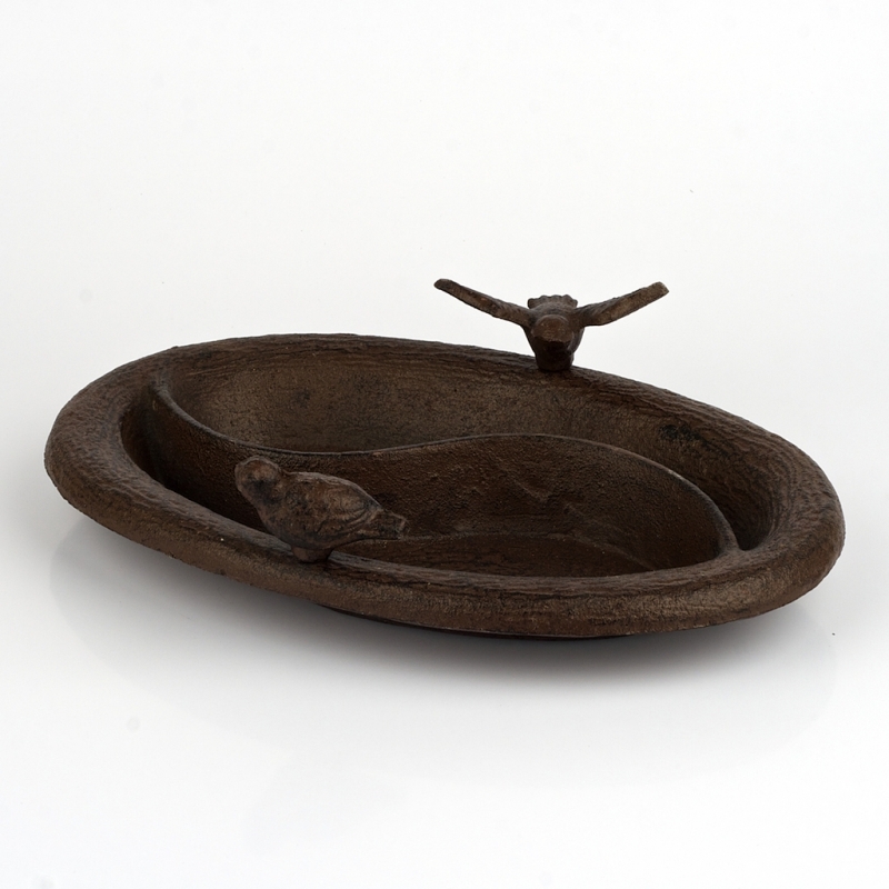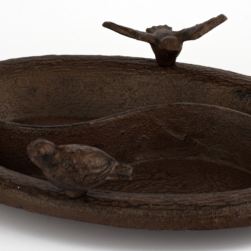 Jedná sa o štýlovú dekoráciu. Liatinový výrobok má rozmer 29 x 20 cm, oválny tvar a zdobia ho dva vtáčiky vypínajúci sa do výšky 7,5 cm.