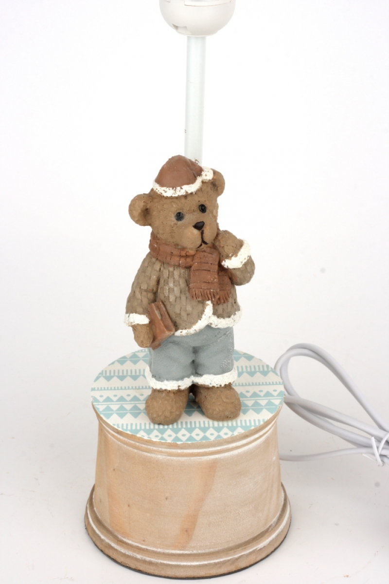 Podstavec lampy je doplnený o sošku medvedíka oblečeného do teplého oblečenia, ktorý drží knižku. Podstavec môžete doplniť o akejkoľvek vhodnej tienidlo.