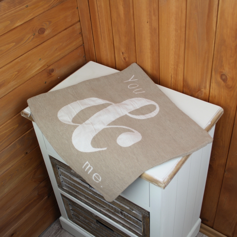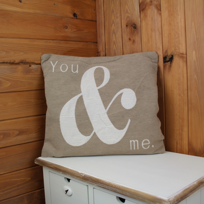 Obliečka na vankúš z novej kolekcie s nápisom You Me. Zaobstarať si nové obliečky na vankúše je veľmi dostupný spôsob, ako miestnosť oživiť zakaždým, keď máte chuť na zmenu.