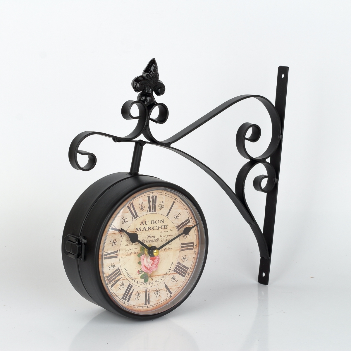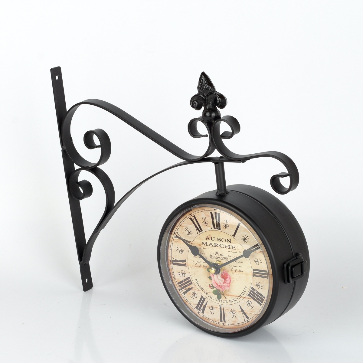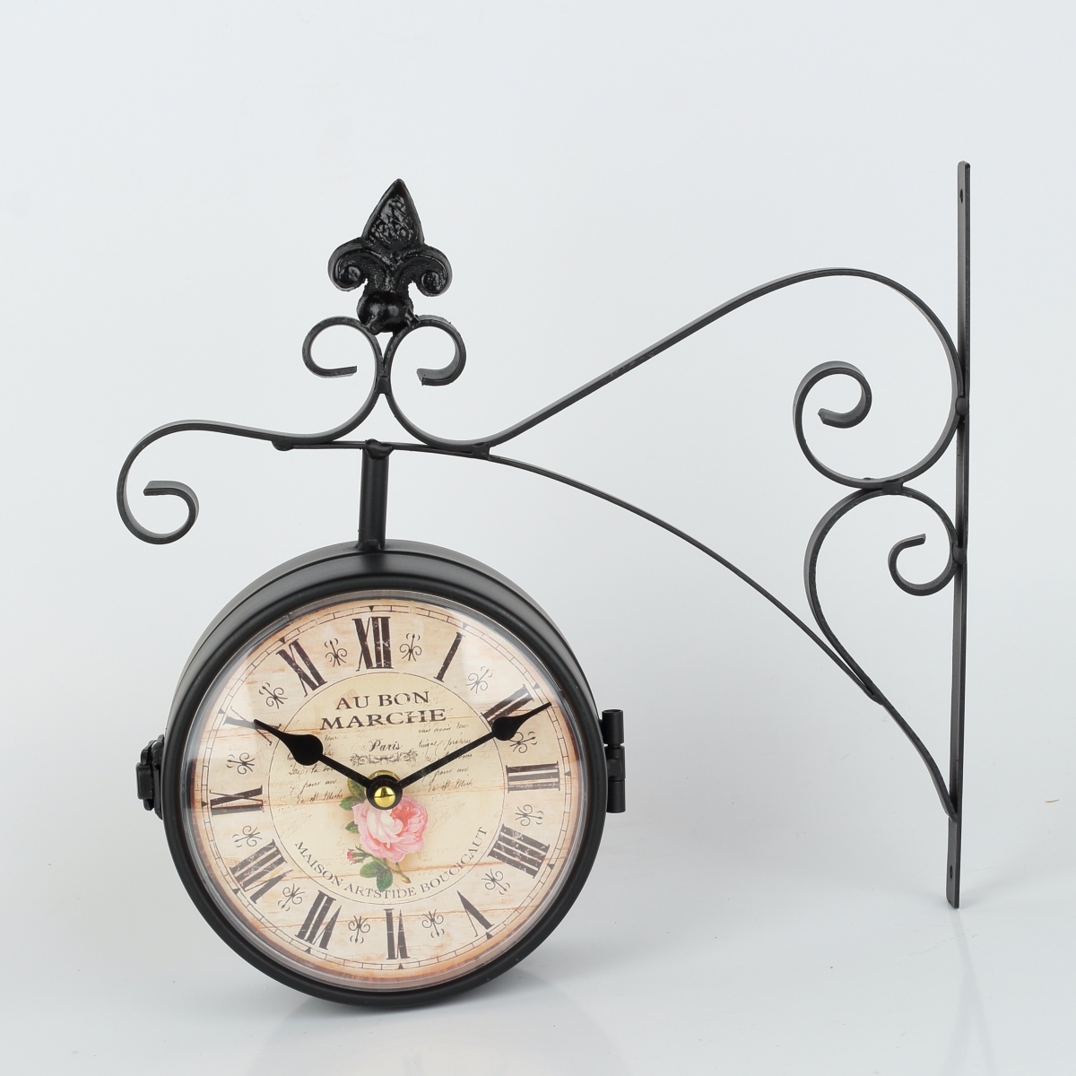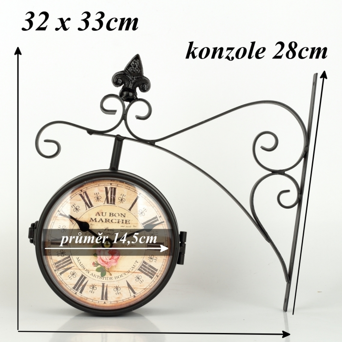 Obojstranné hodiny kovové s ruží