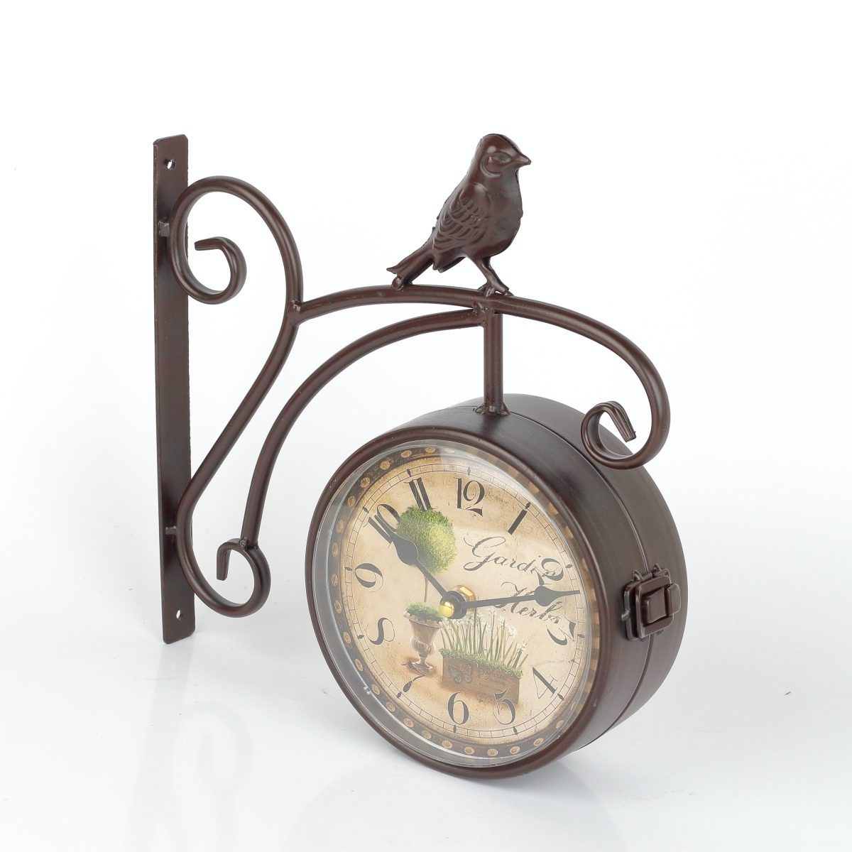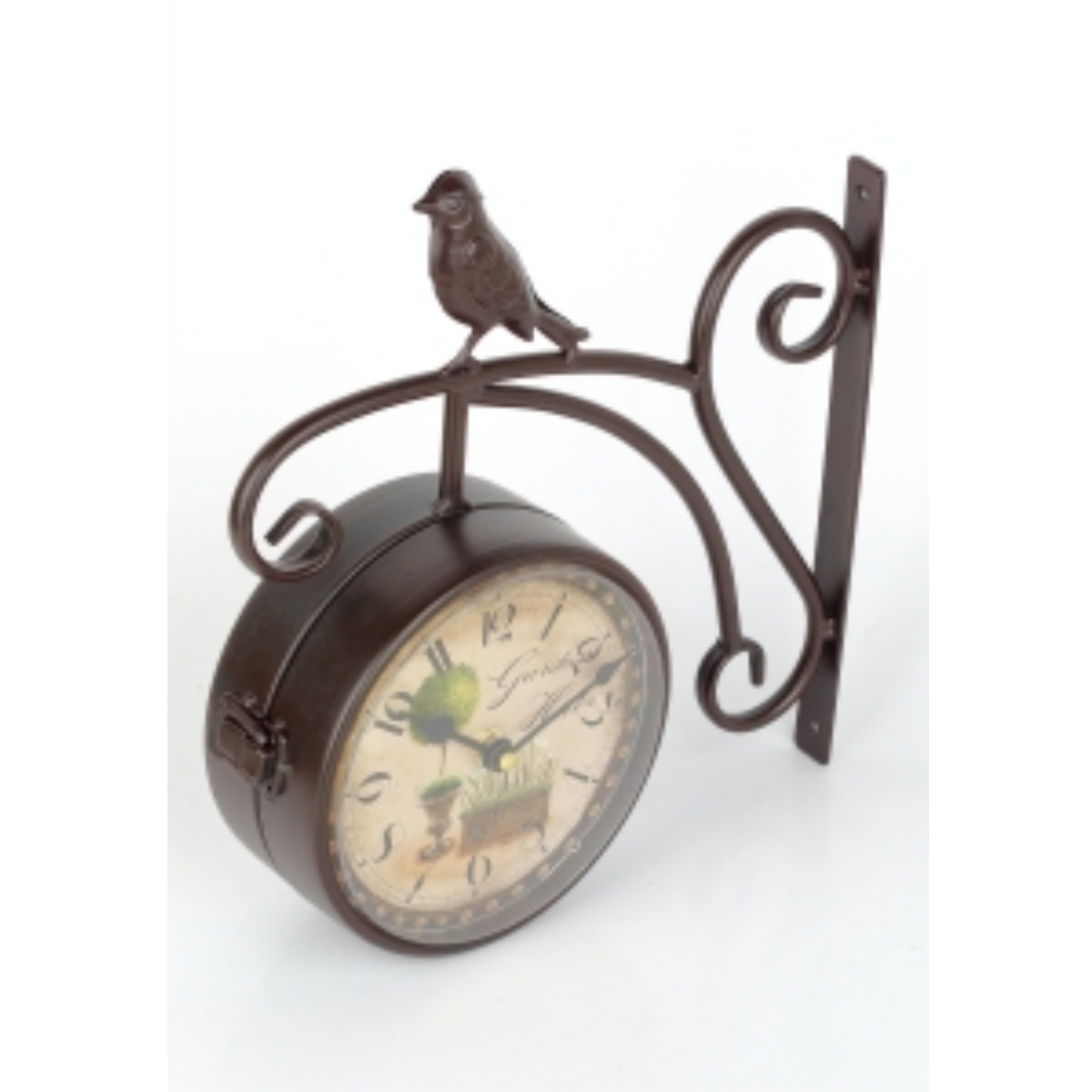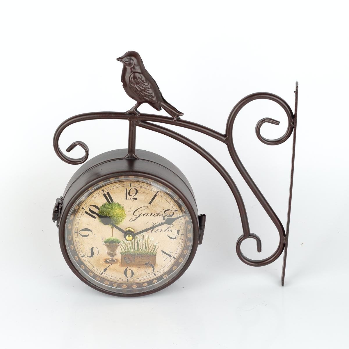 Obojstranné nástenné hodiny s vtáčikom a motívom bylinkovej záhrady