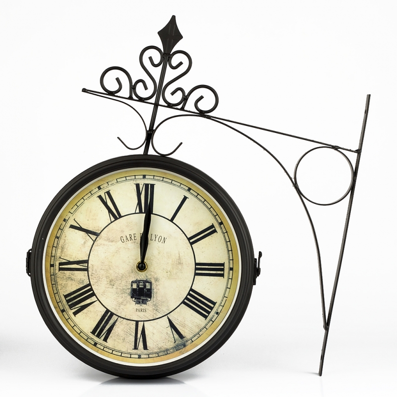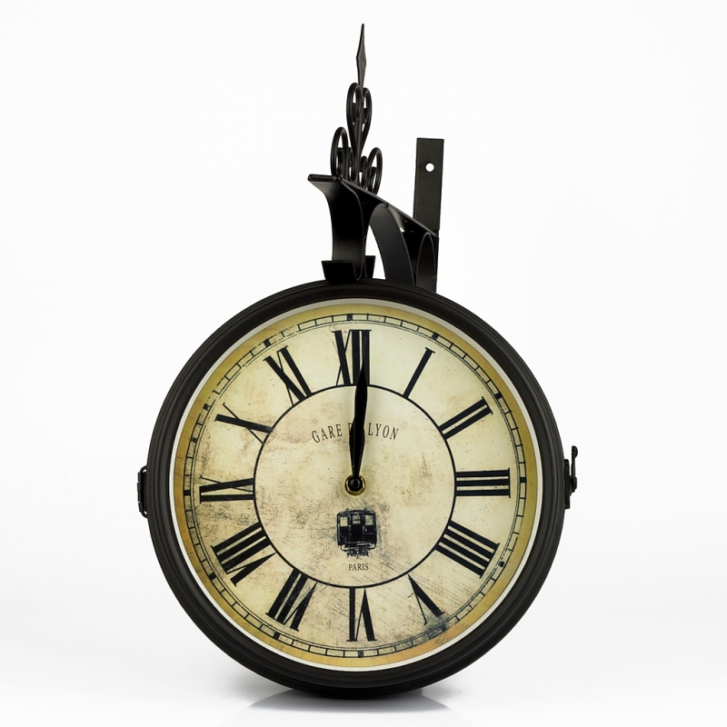 Hodiny nádražní oboustranné Gare De Lyon 43x43x10cm v retro stylu starého anglického nádraží Gare De Lyon.