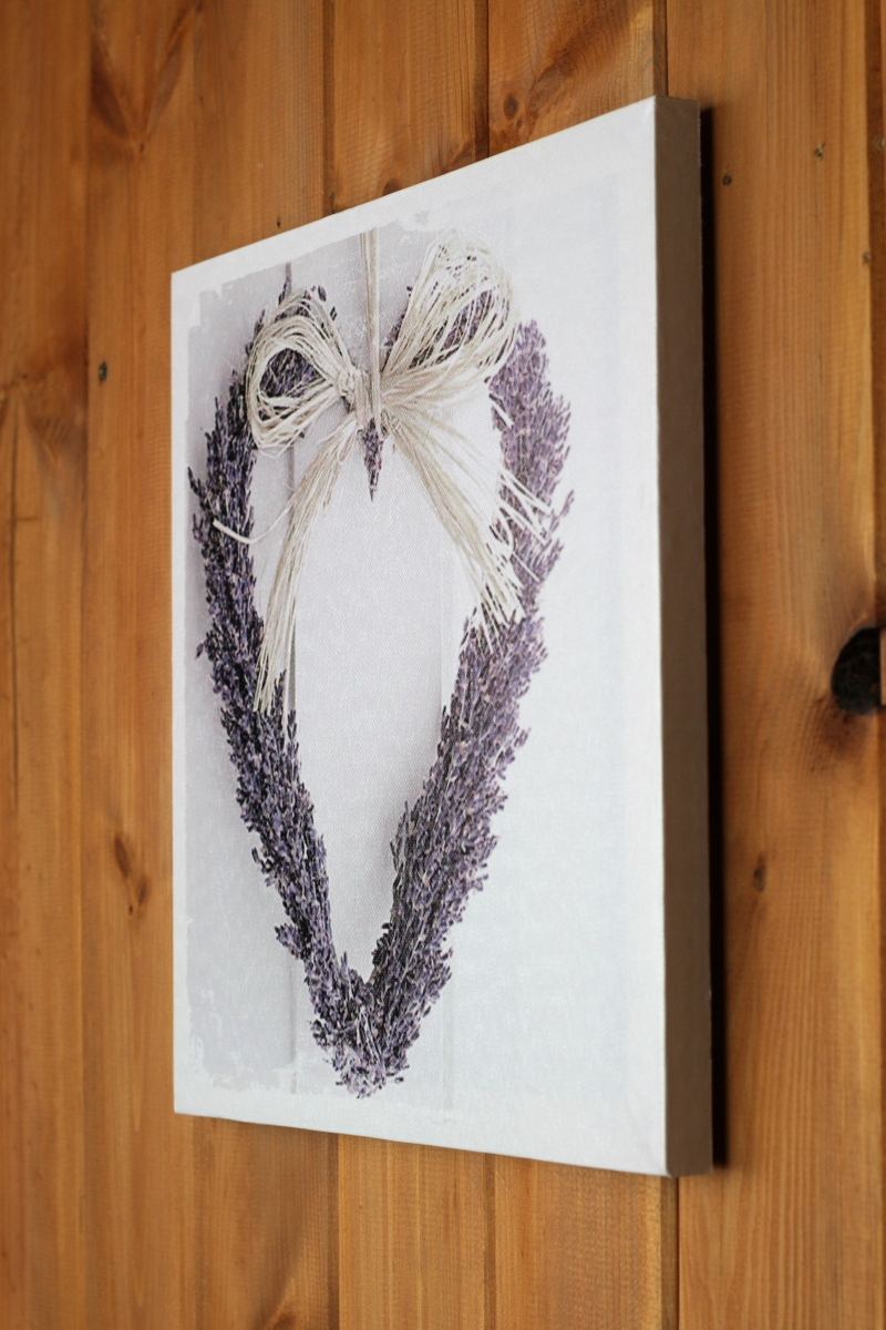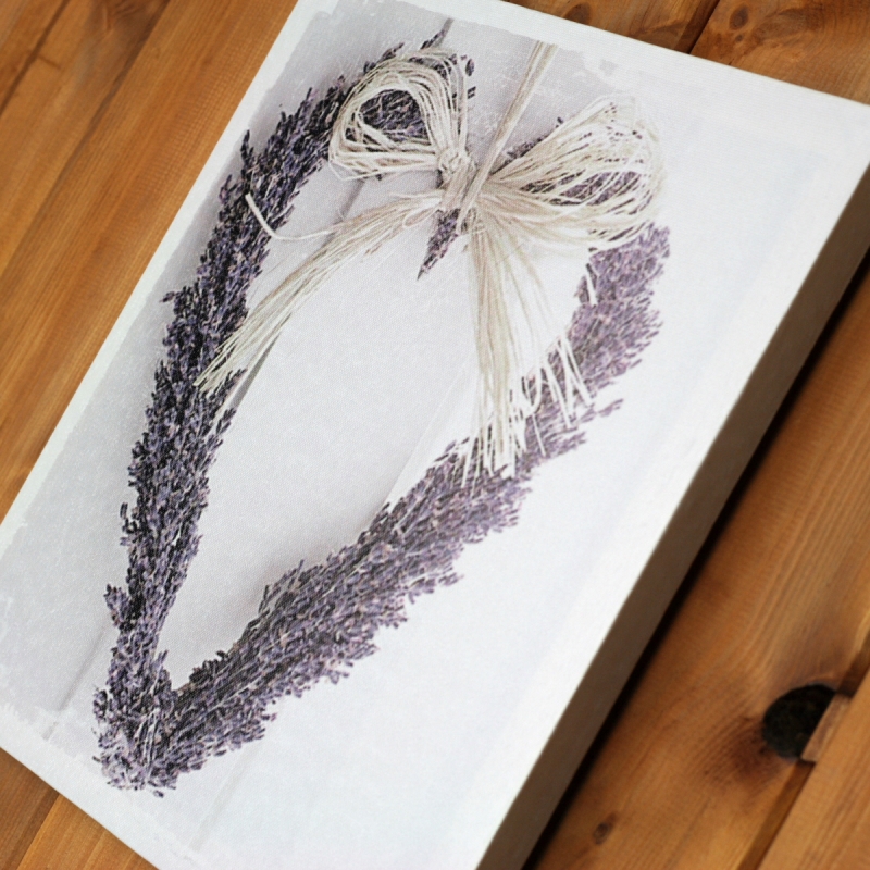 Obraz na plátne Levanduľové srdce 28x28cm zaujme predovšetkým milovníkov levandule. Nie je vôbec ľahké odolať levandulovému pokušenia, nádherné vôňu a predstave nekonečných lánov levanduľových polí.