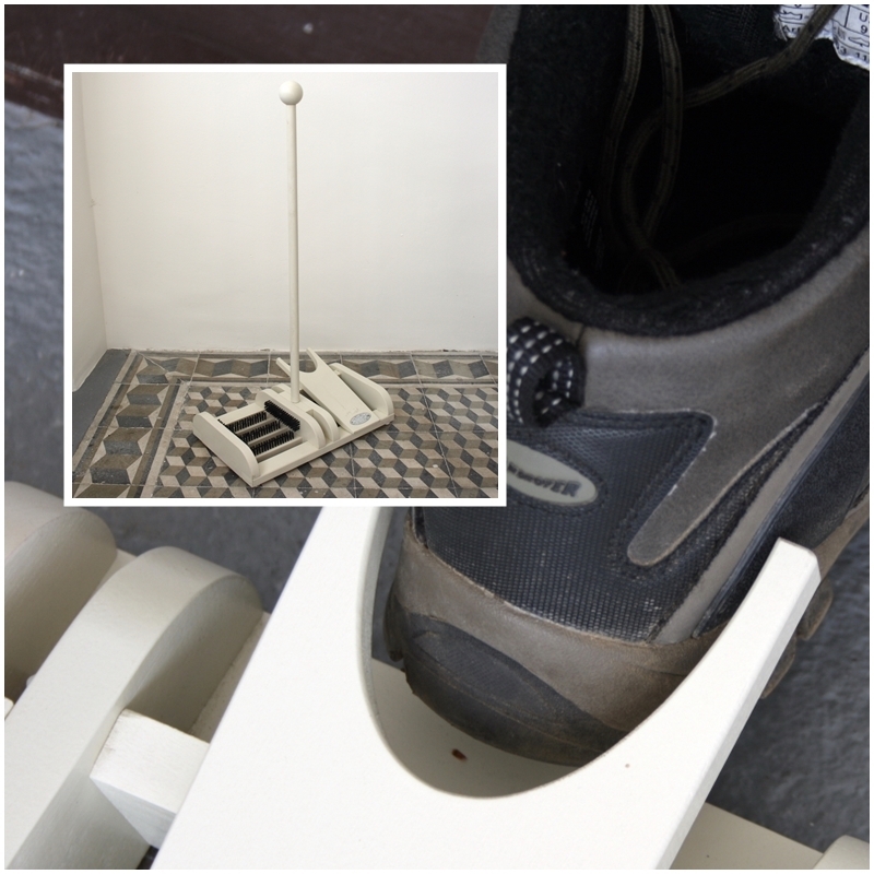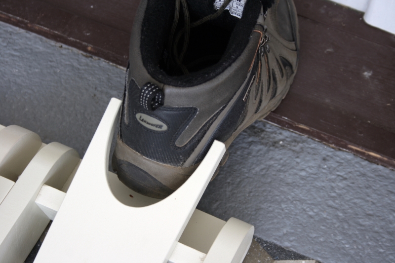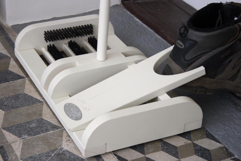 Pravá časť slúži na vyzúvanie topánok, ľavá na očistenie topánok od nečistôt. Uprostred je dlhá tyč, ktorú celý stojan pridržíte a pohodlne sa zbavíte obuvi.