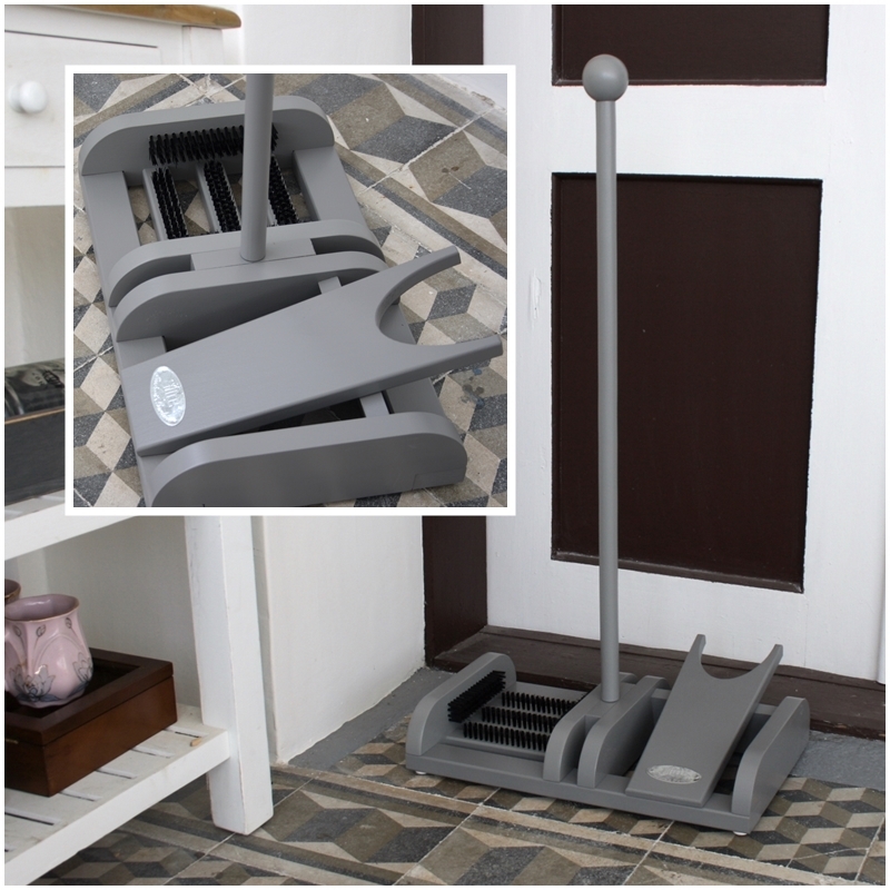Pravá časť slúži na vyzúvanie topánok, ľavá na očistenie topánok od nečistôt. Uprostred je dlhá tyč, ktorú celý stojan pridržíte a pohodlne sa zbavíte obuvi.