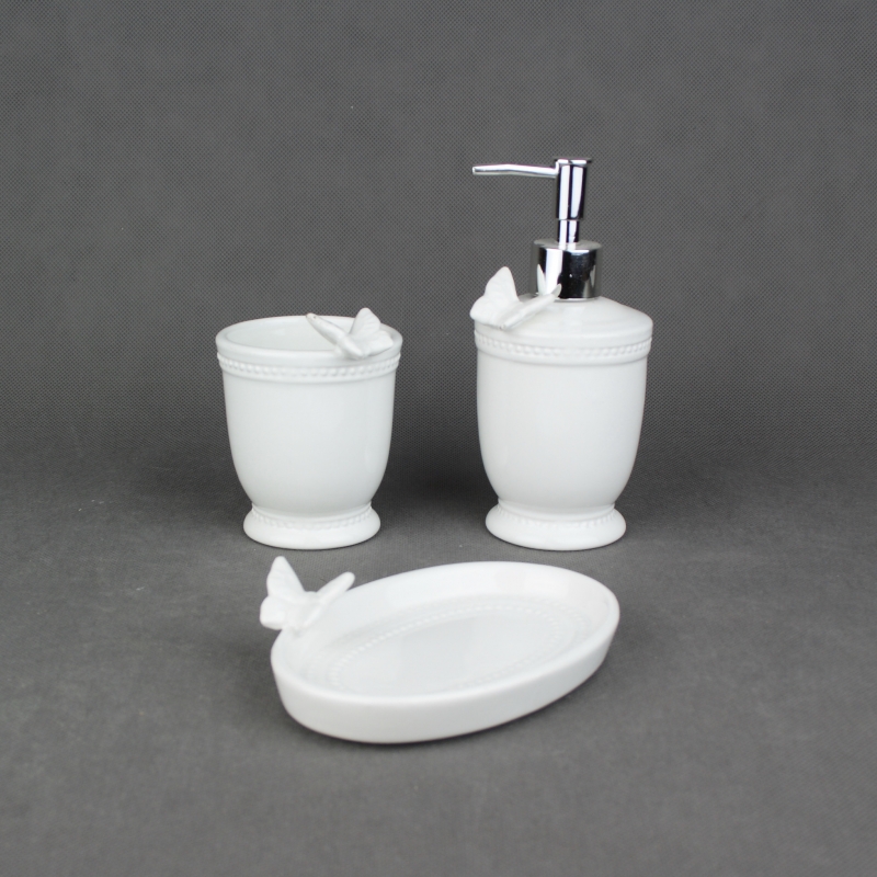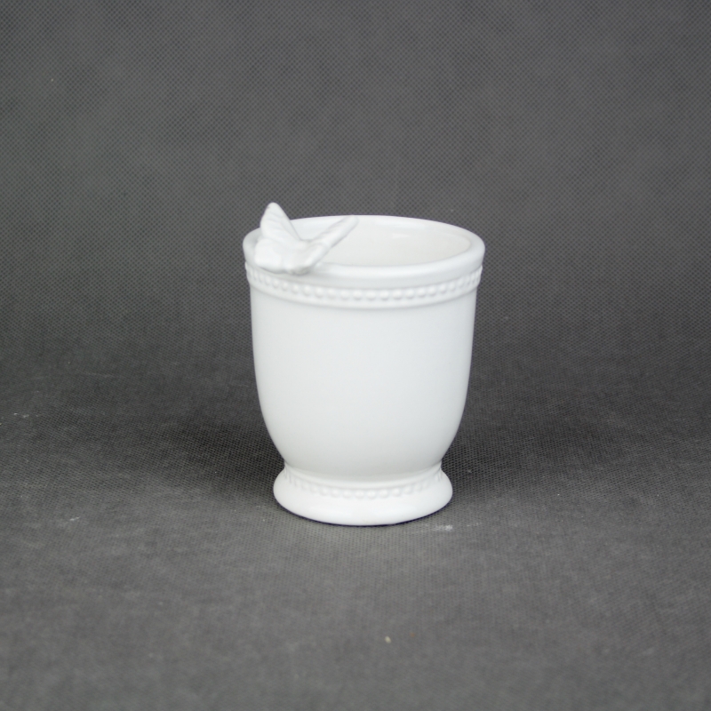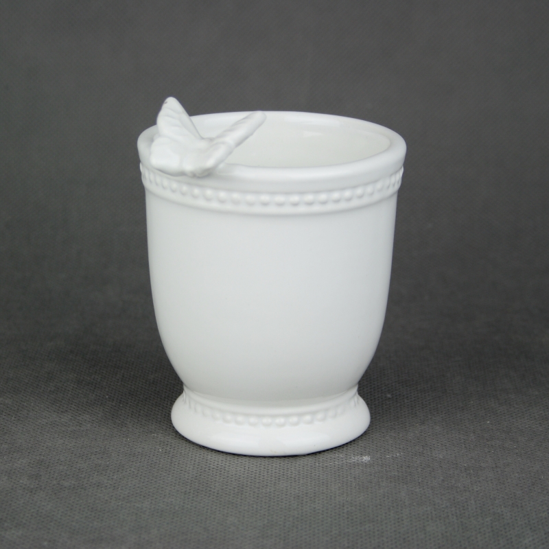 Odkladač na zubné kefky je jednoduchým riešením, kam sa zubnými kefkami. Keramický pohárom má bielu farbu a je ozdobený motýľom.