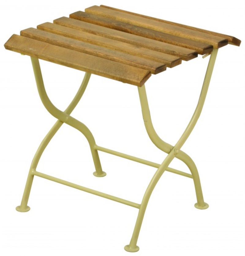 Drevený skladací záhradný stolík s kovovou kostrou. Vo farebnom prevedení svetlé hnedé v kombinácii s krémovou bielou. Čistý a elegantný vzhľad.