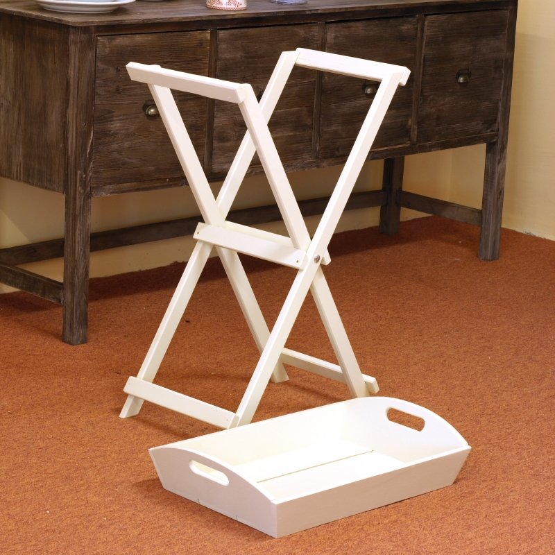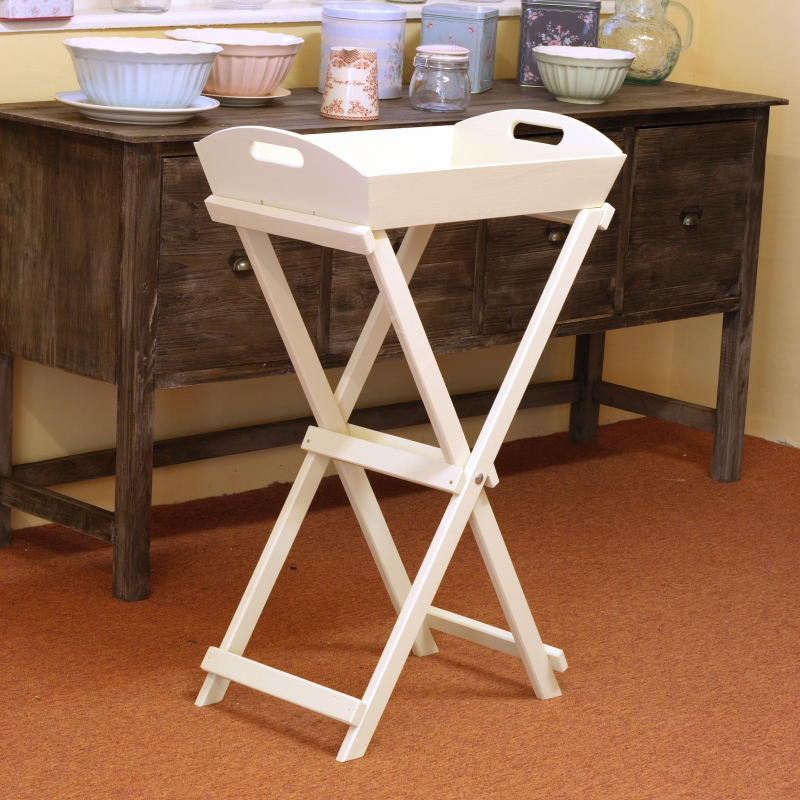 Tento drevený odkladací stolík má bielu farbu, pochádza z novej kolekcie záhradných doplnkov od Esschert Design.