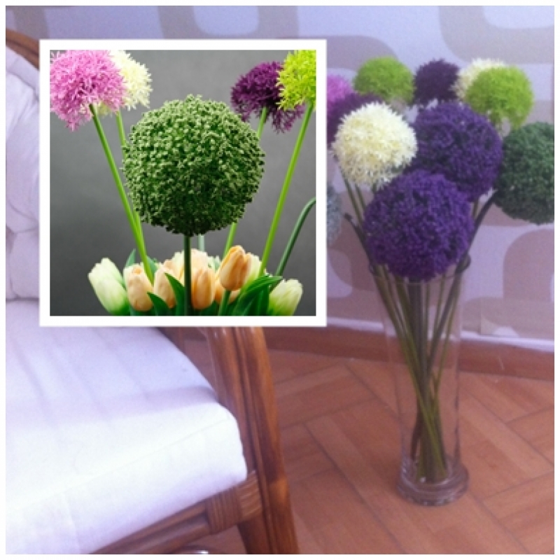 Okrasný cesnak veľký zelený má dĺžku 61cm a priemer kvetu 14cm
