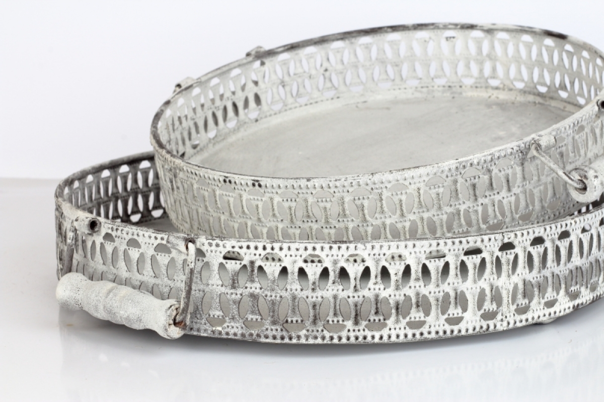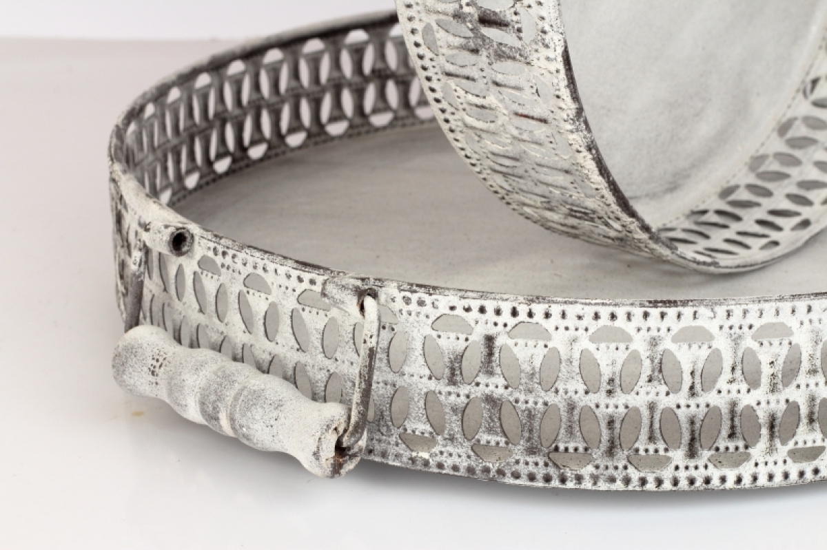 Okrúhly podnos kovový biely 28x28x6cm