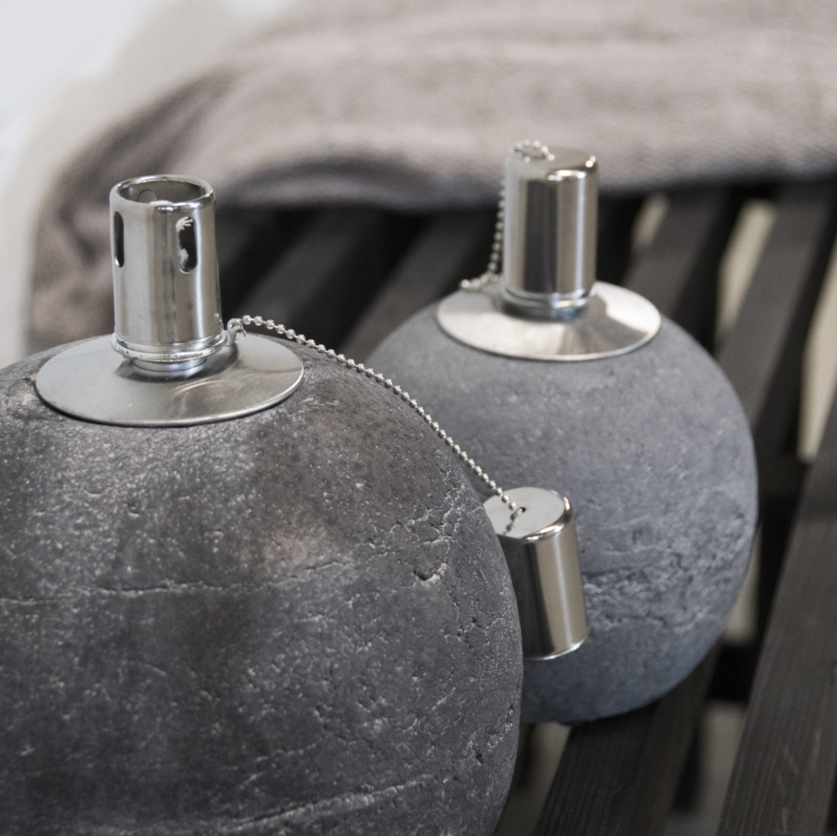 Materiál: betón, nerezová oceľ, knôt zo sklenených vlákien.