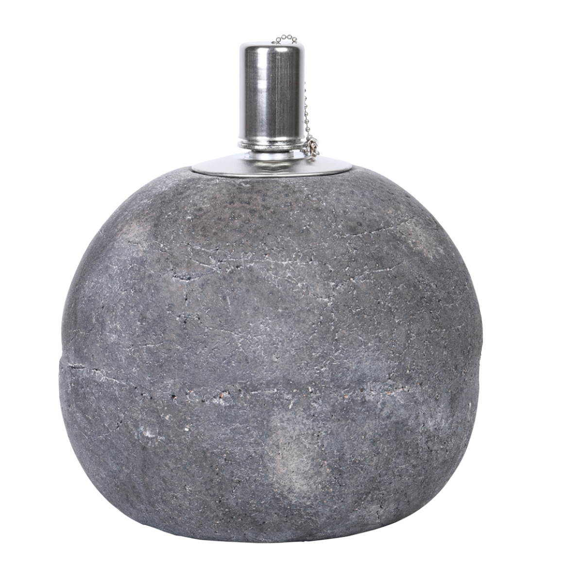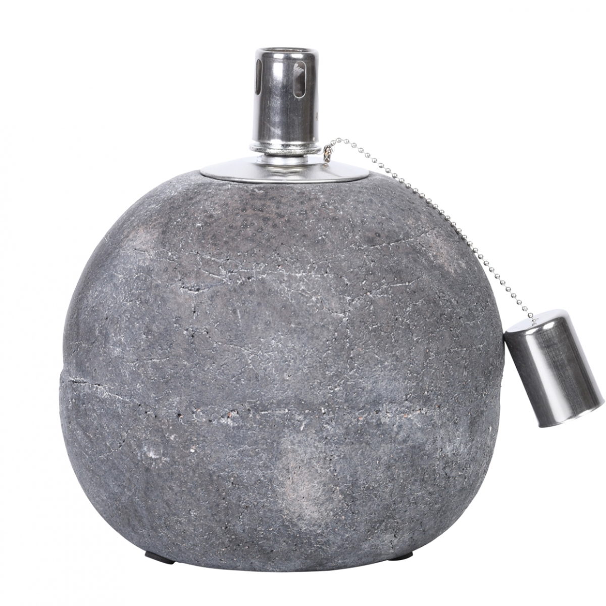 Olejová lampa betónová s bubnovým zásobníkom oleja a zhášacej čiapočkou na retiazkové závesu.
