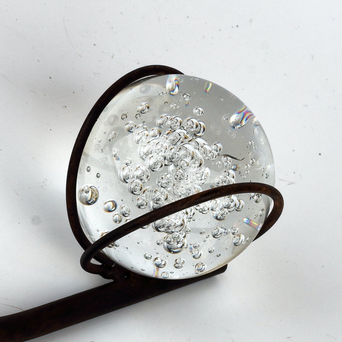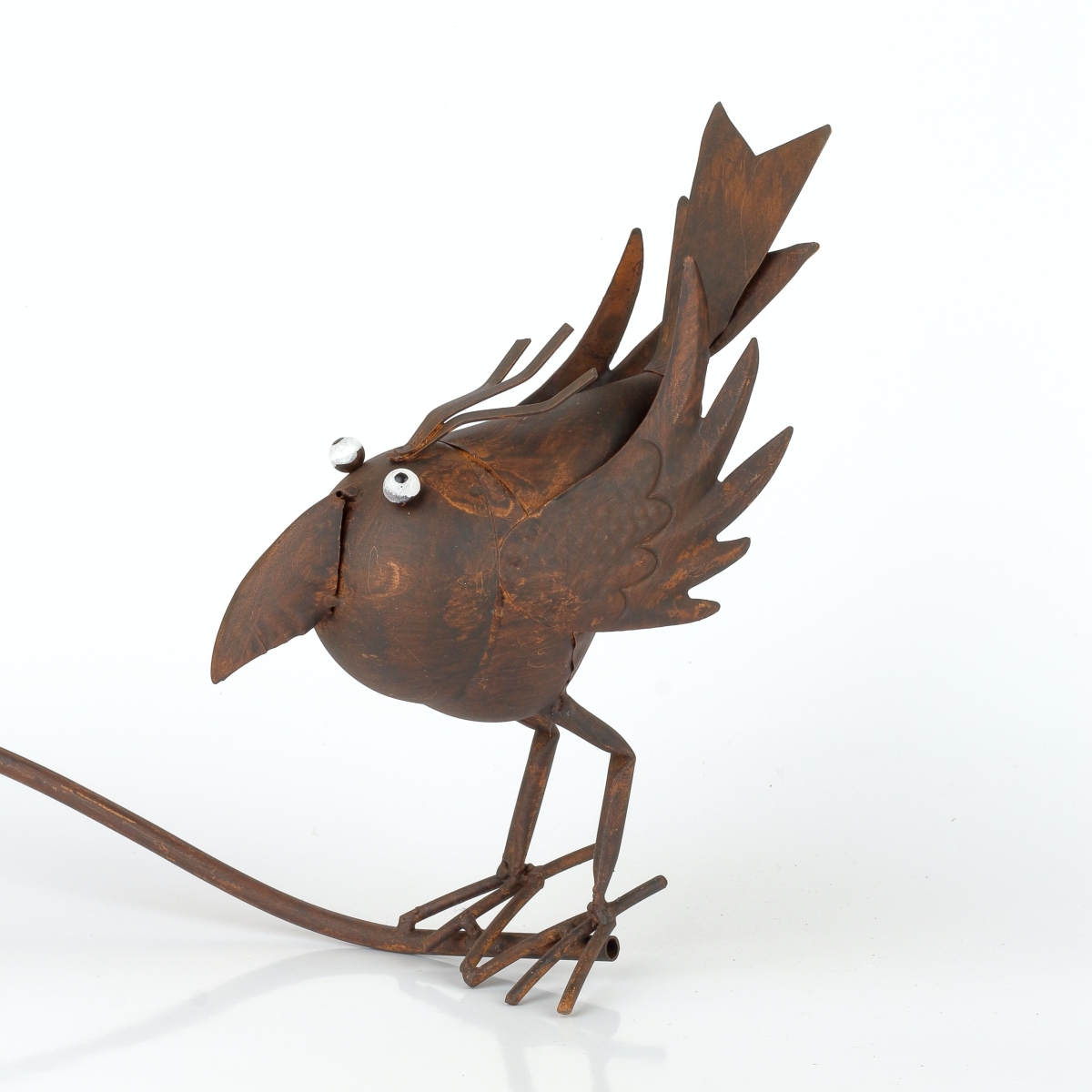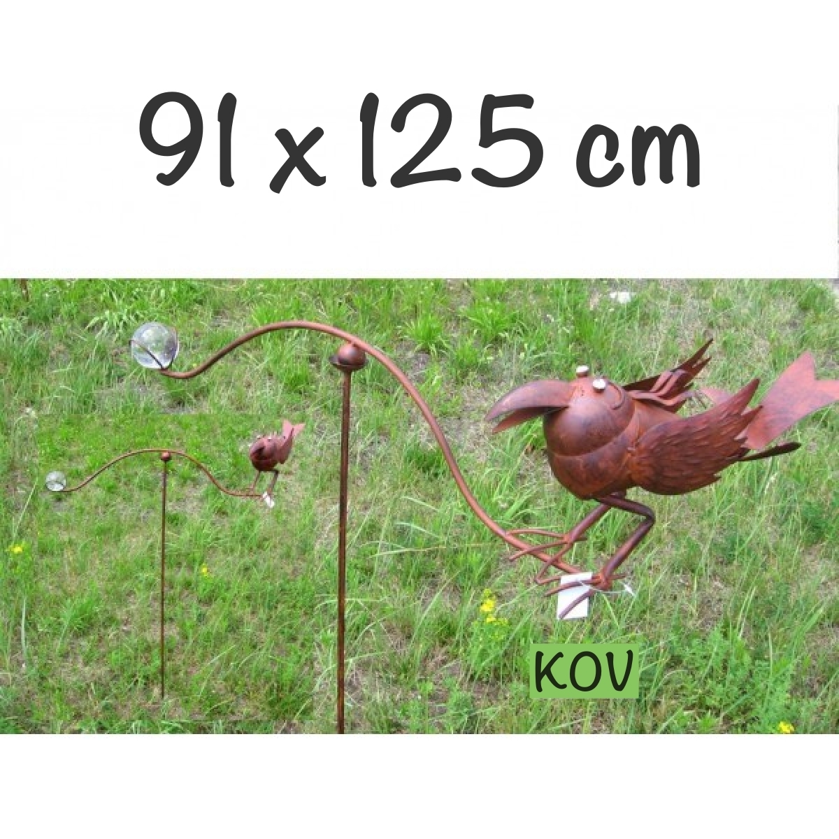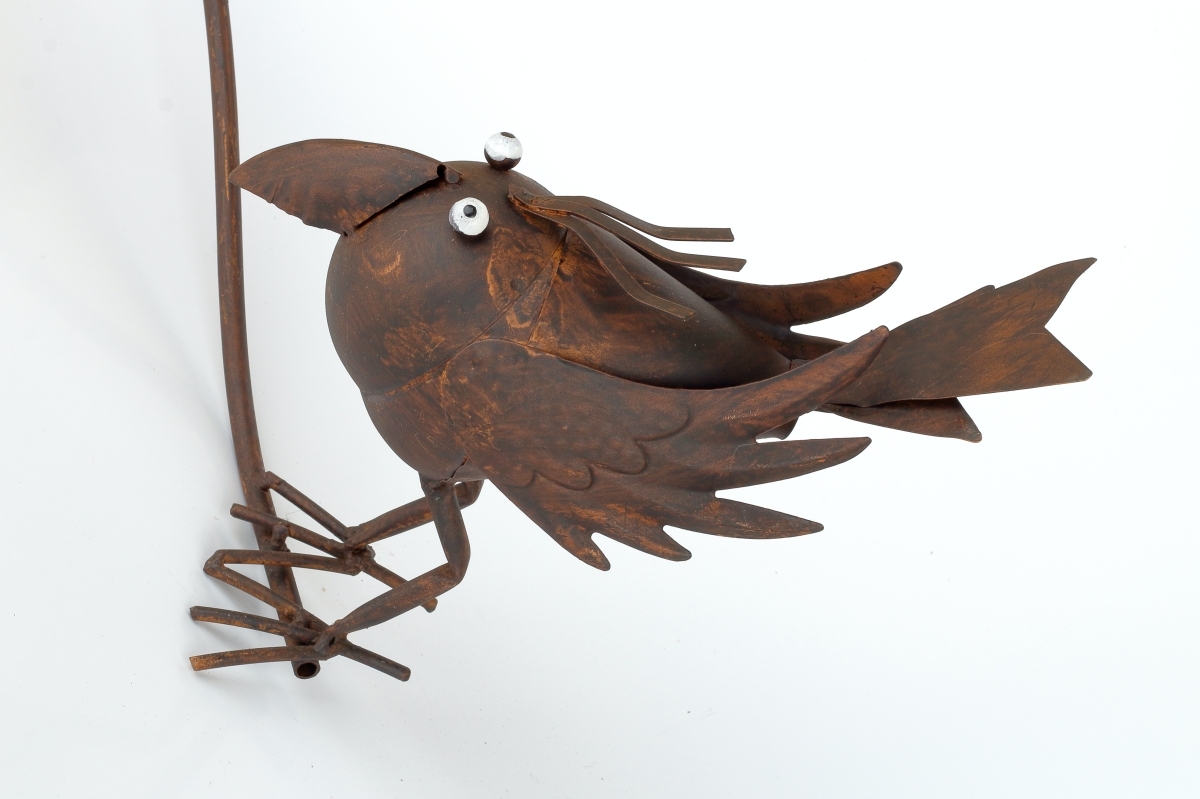 Originálna záhradná dekorácia je vyrábaná ručnou klampiarskou prácou a každý kus je tak originálnym výtvorom. Zápich ľahko umiestnite do trávnika a do mištičky v hornej časti položíte vyvážené vahadlo, ktoré dovolí vtáčiku kymácať sa hore a dole a pri silnejšom vetre aj kroužit dookola. táčka vyvažuje skleněná magická koule se vzduchovými bublinkami uvnitř. Zápich má celkovou délku 119cm.
